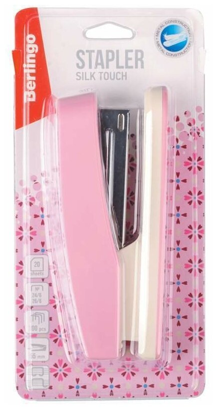Купить Степлер №24/6, 26/6 Berlingo "Silk Touch", до 20л., пластиковый корпус, розовый