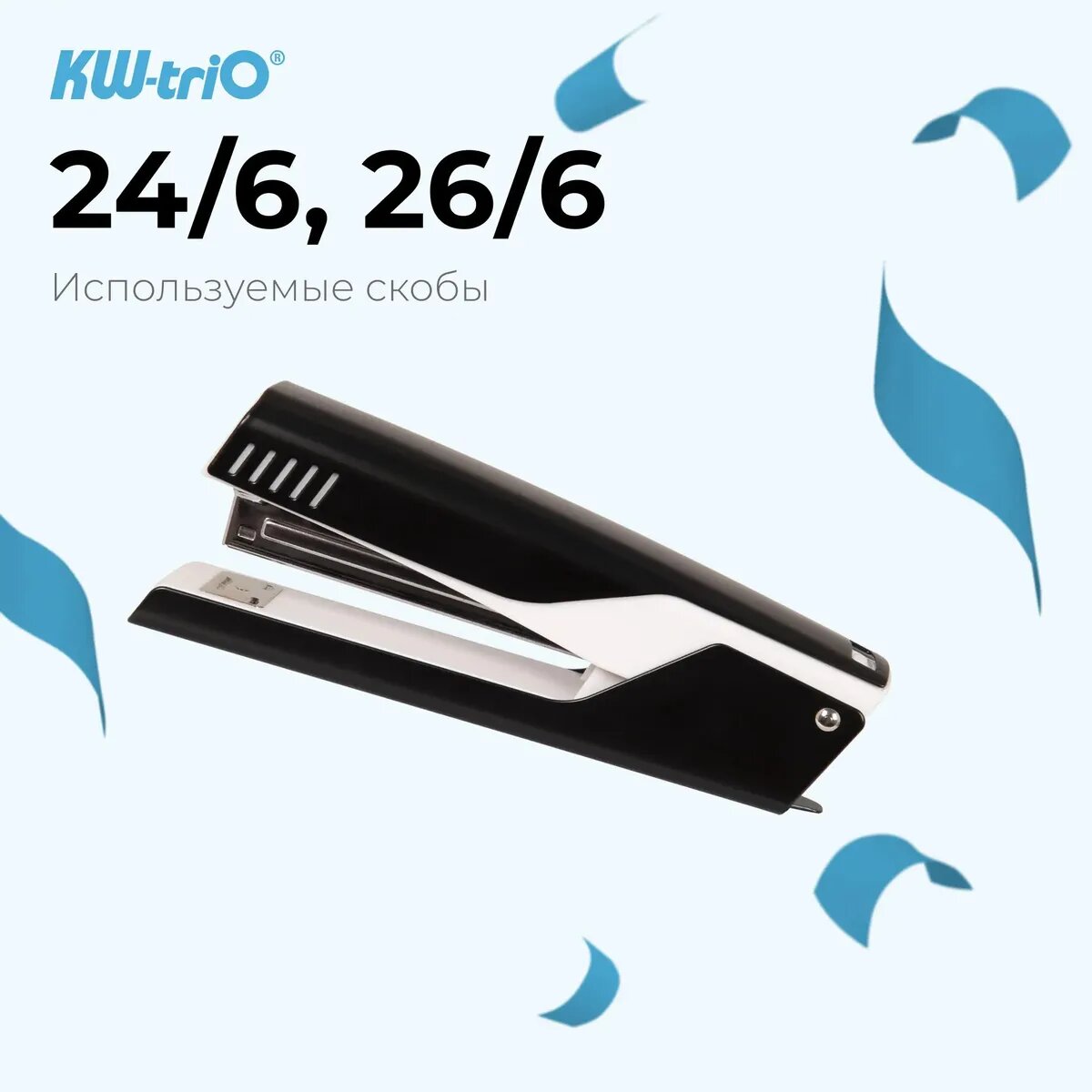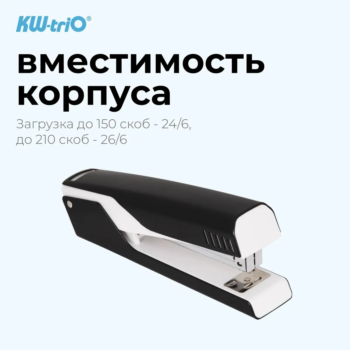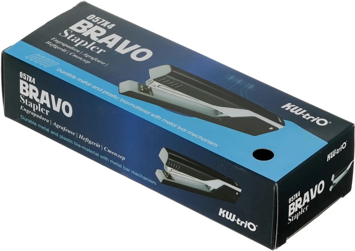 Степлер KW-Trio Bravo Full strip, 20 листов, 210 скоб, черный и белый [057x4-blk] интересное: