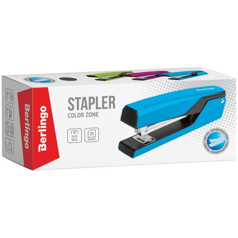 Степлер Berlingo №24-6, 26-6, "Color Zone" до 20 листов, металлический корпус, розовый (DSn_20114) интересное: