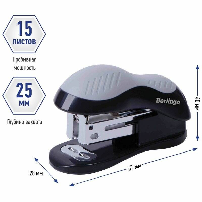 Мини-степлер Berlingo №24 6, 26 6 "Office Soft" до 15 листов, черный H15001 интересное: