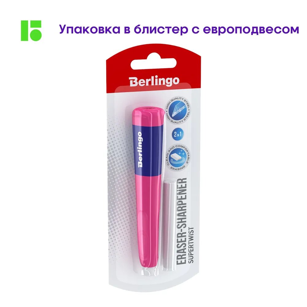 Купить Точилка пластиковая с ластиком Berlingo "Supertwist" 1 отверстие, блистер, розовый