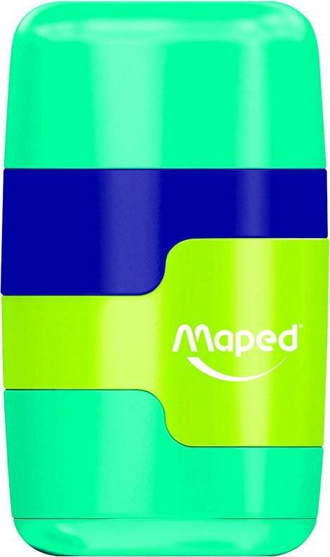 Купить Точилка ручная пластиковая с ластиком Maped Connect 2-в-1 (2 отверстия, с контейнером, инд. ШК)