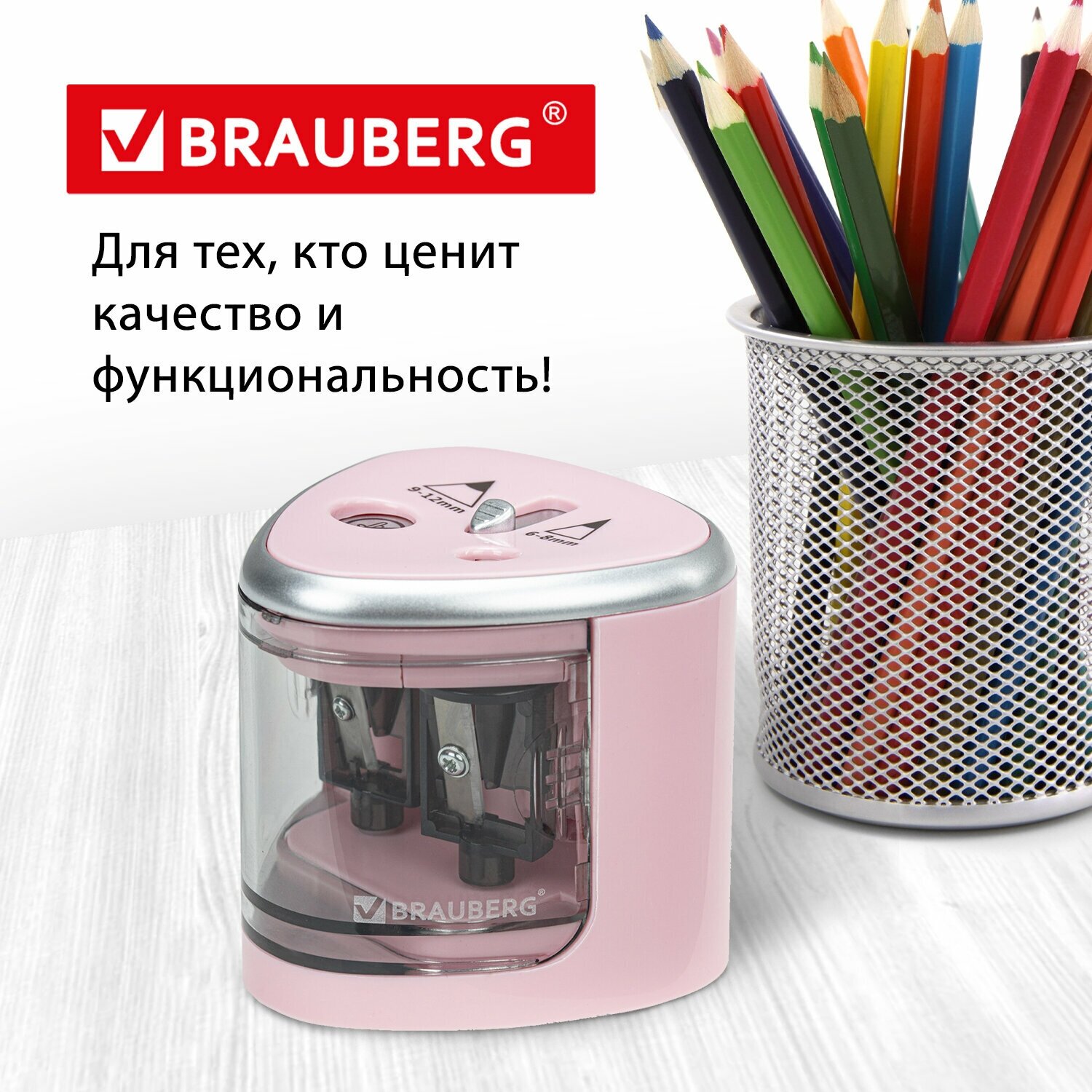 Купить Точилка электрическая (электроточилка) для карандашей с контейнером для стружки Brauberg Dual (для 2 диаметров карандашей!), розовая