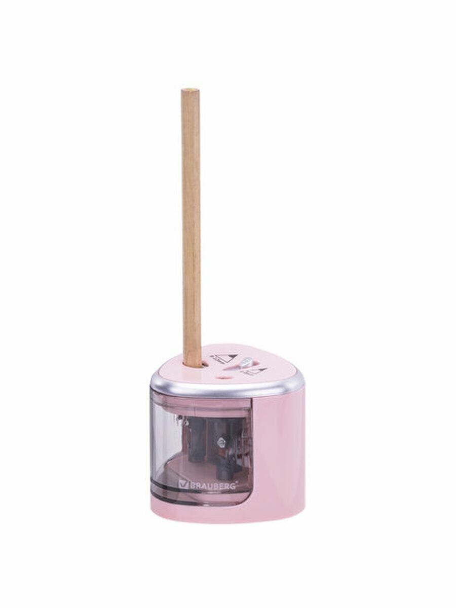 Точилка электрическая (электроточилка) для карандашей с контейнером для стружки Brauberg Dual (для 2 диаметров карандашей!), розовая