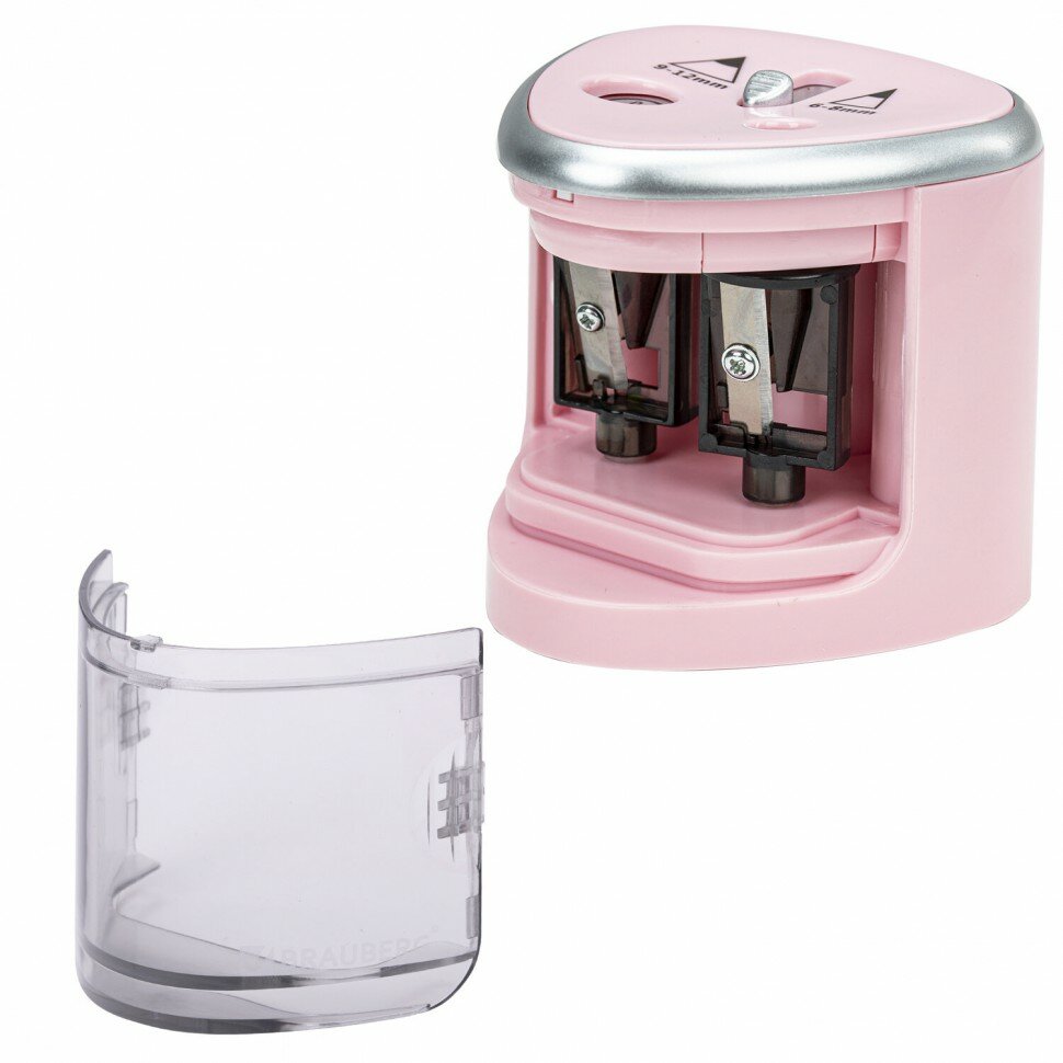 Точилка электрическая (электроточилка) для карандашей с контейнером для стружки Brauberg Dual (для 2 диаметров карандашей!), розовая, 4 батарейки АА, 270579