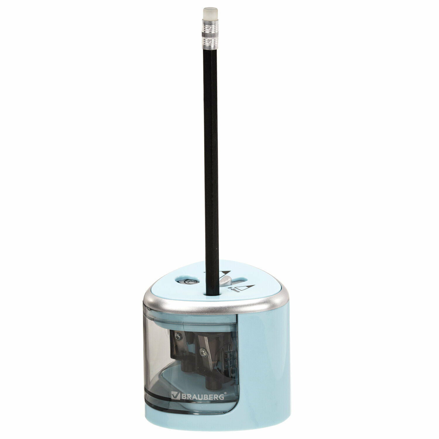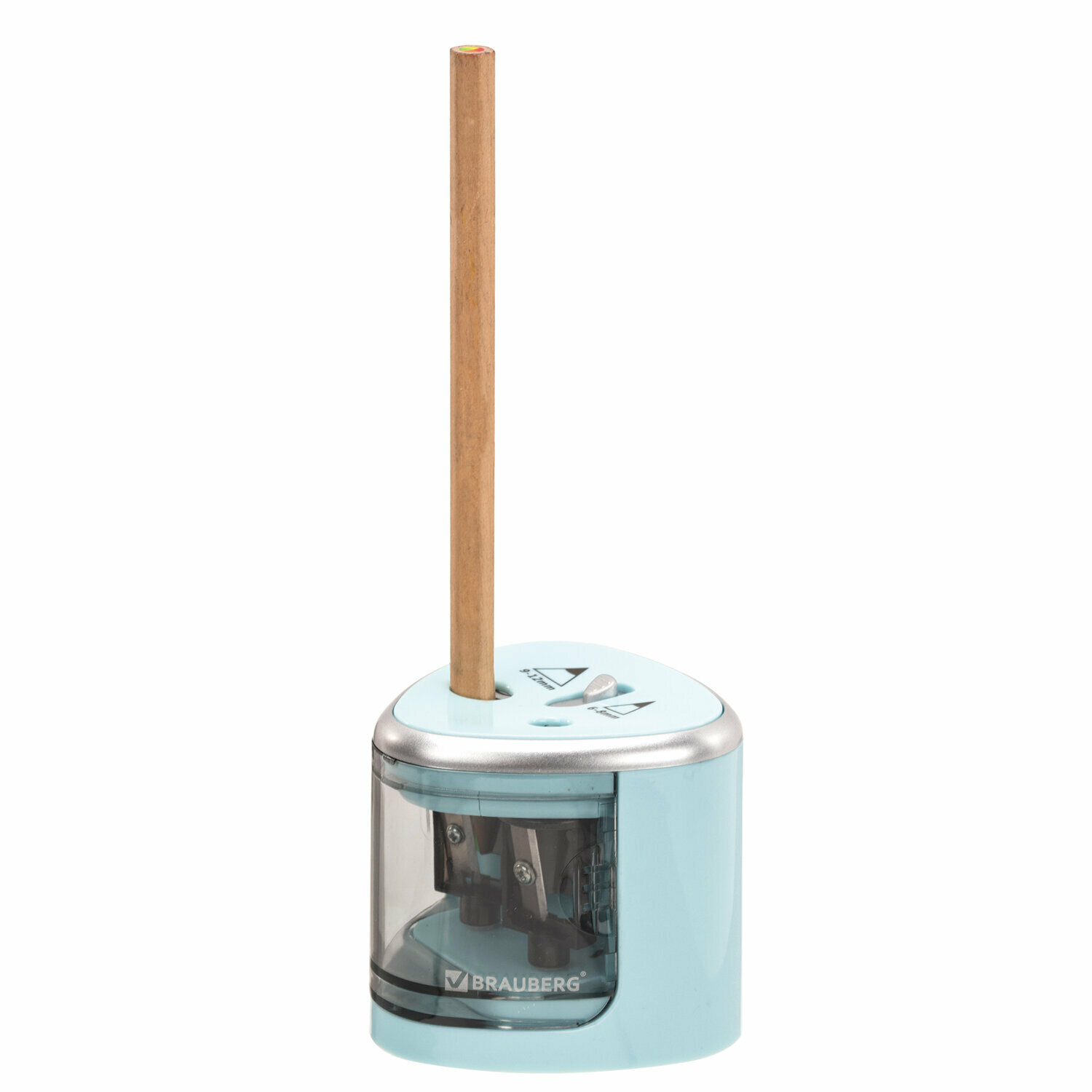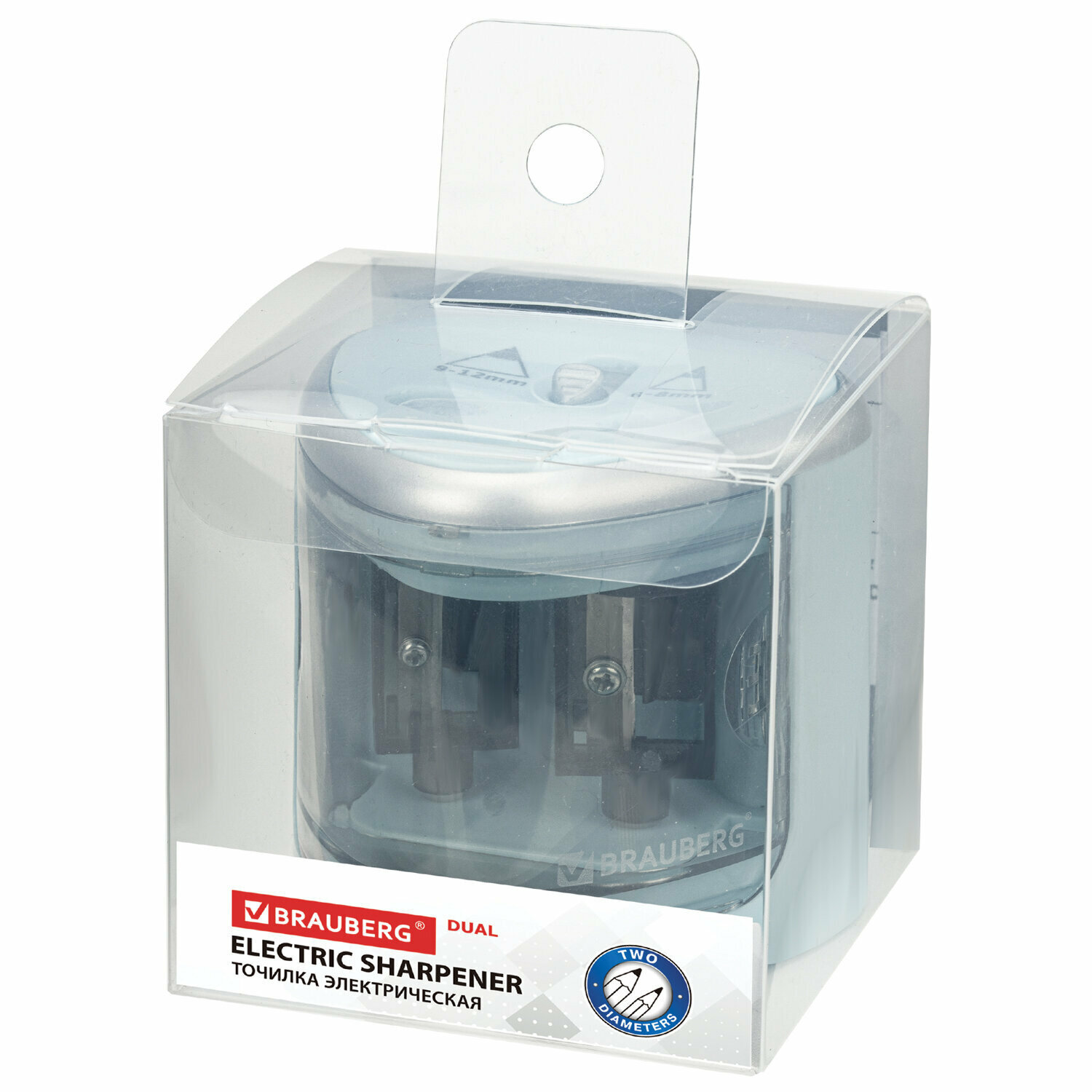 Купить Точилка электрическая Brauberg Dual, для 2 диаметров карандашей, 4 батарейки АА, голубая (270578)