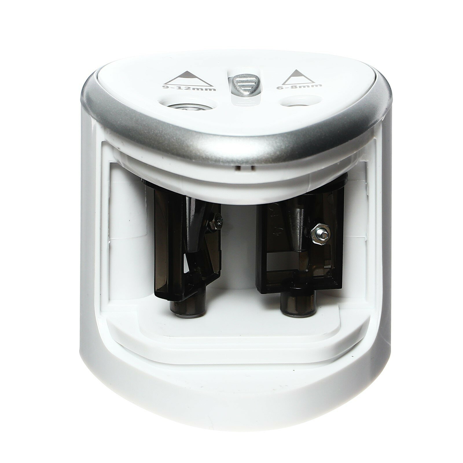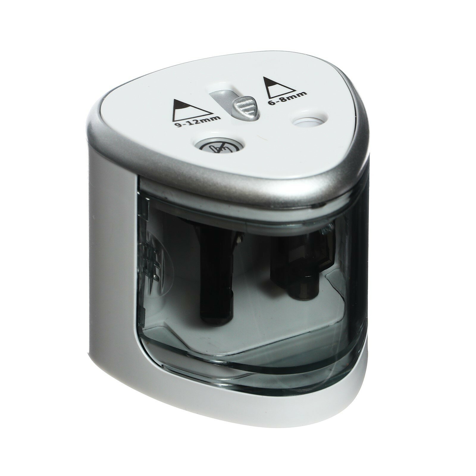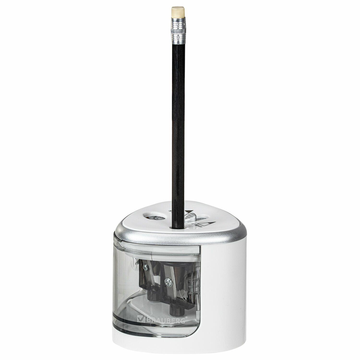 Точилка электрическая (электроточилка) для карандашей с контейнером для стружки Brauberg Dual (для 2 диаметров карандашей!), белая, 4 батарейки АА, 270580