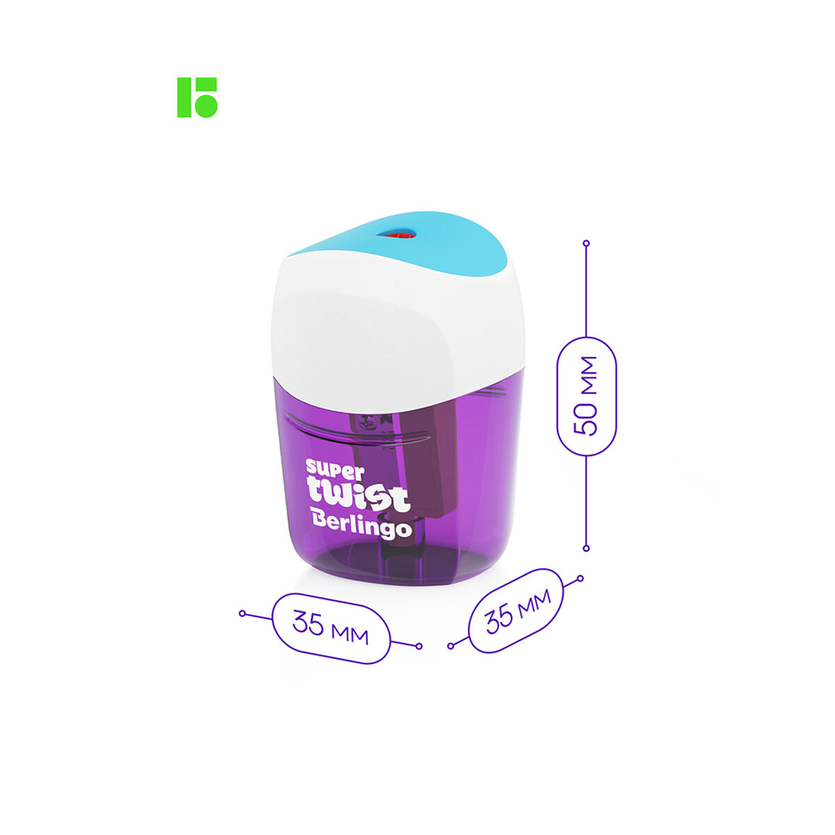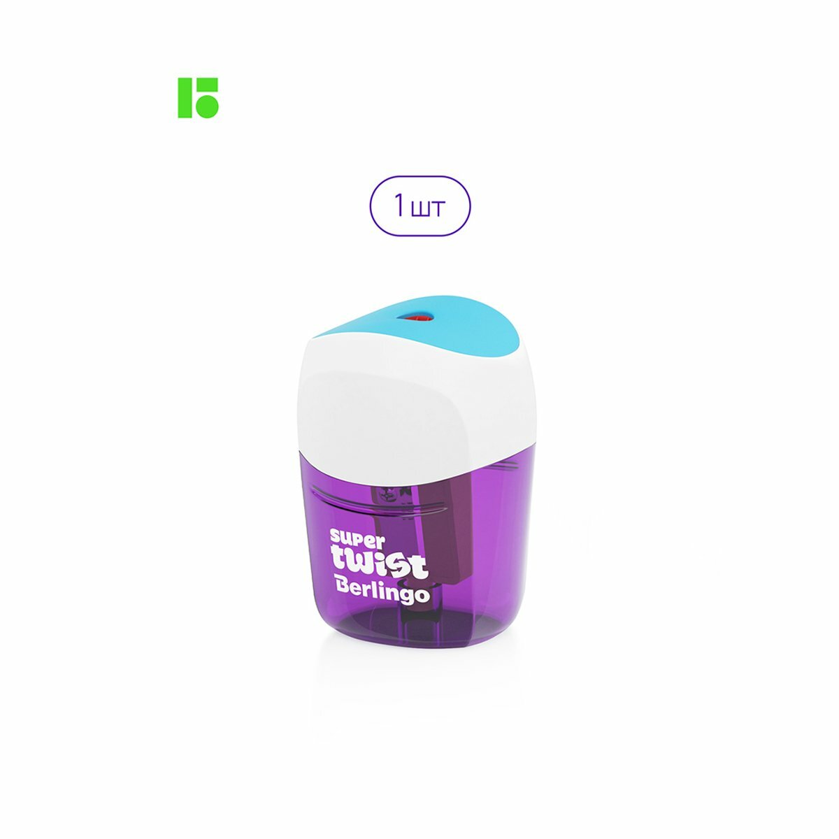 Точилка ручная пластиковая Berlingo SuperTwist (1 отверстие, с контейнером) блистер (BBp_15006), 1шт.
