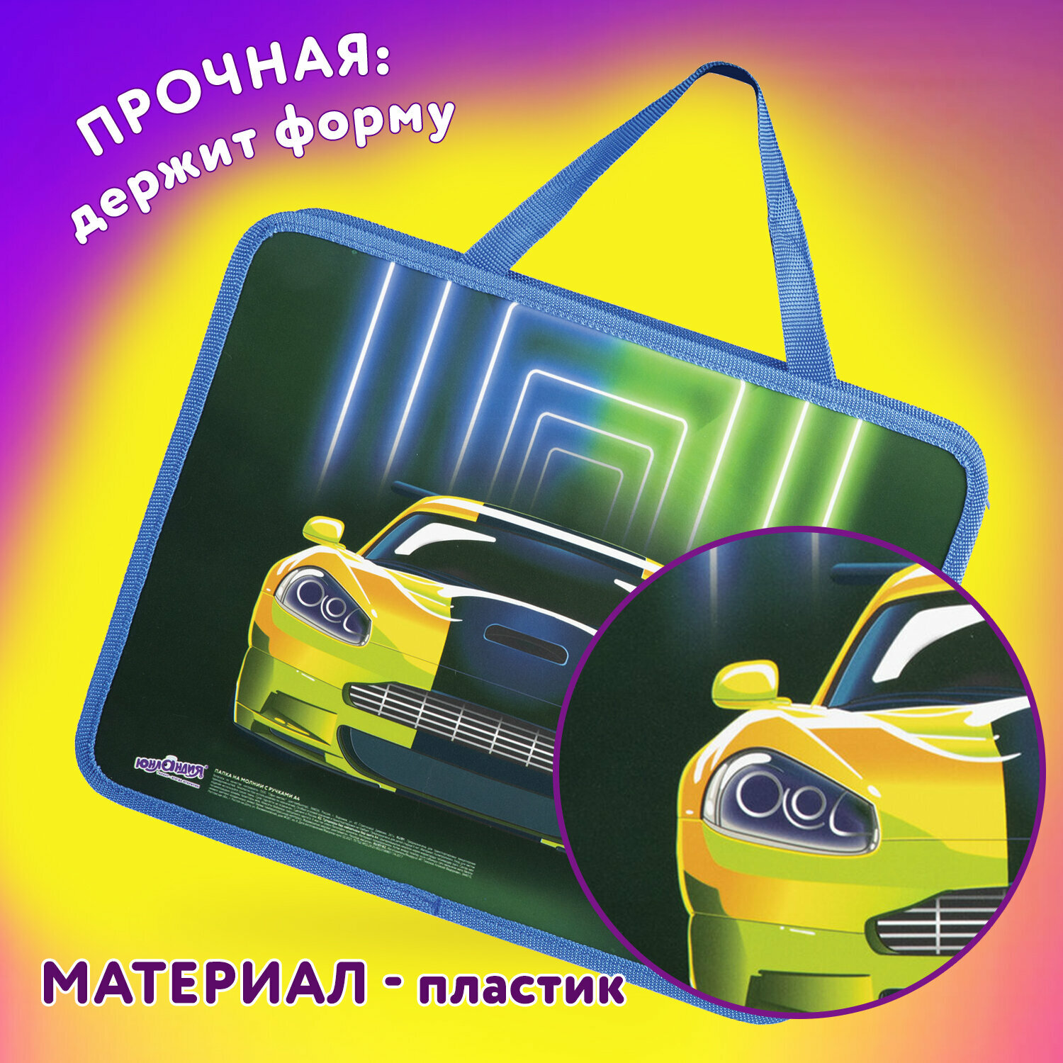 Папка с ручками А4 Юнландия "Neon car", пластик, на молнии (270118)