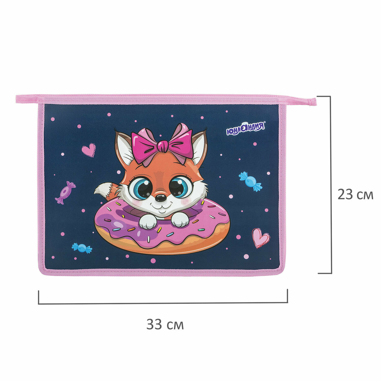 Папка на молнии с ручками А4 Юнландия "Sweet", 1 отделение, пластик, ширина 45мм (270947)