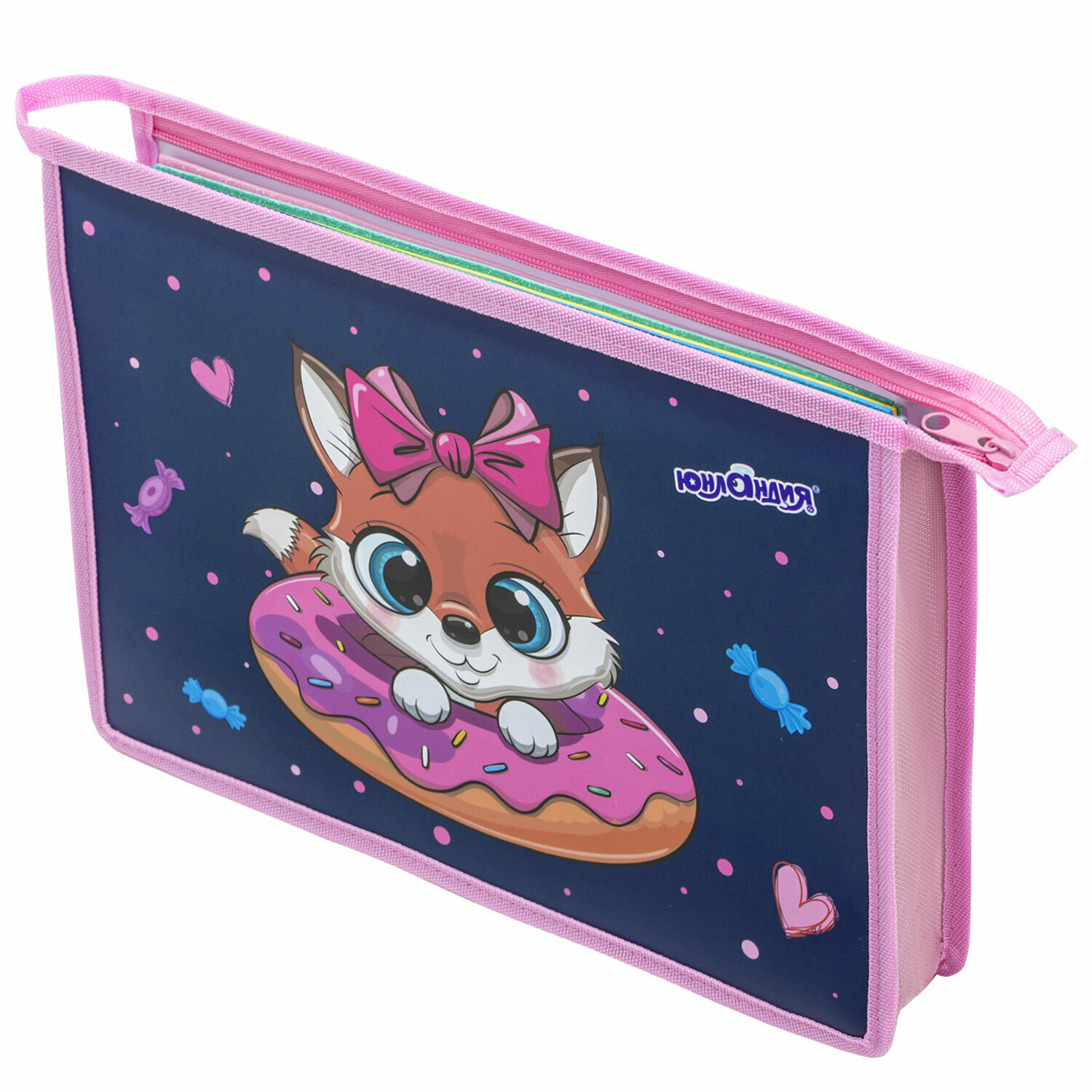 Папка для тетрадей Юнландия А4, 1 отделение, пластик, на молнии, Candy friends, 272139