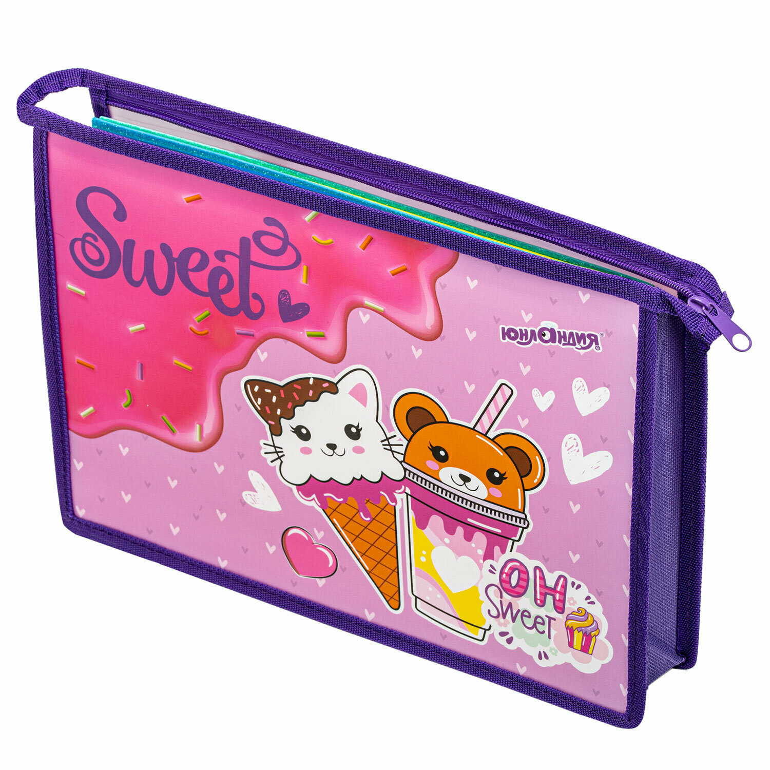 Папка на молнии с ручками А4 Юнландия "Sweet", 1 отделение, пластик, ширина 45мм (270947)