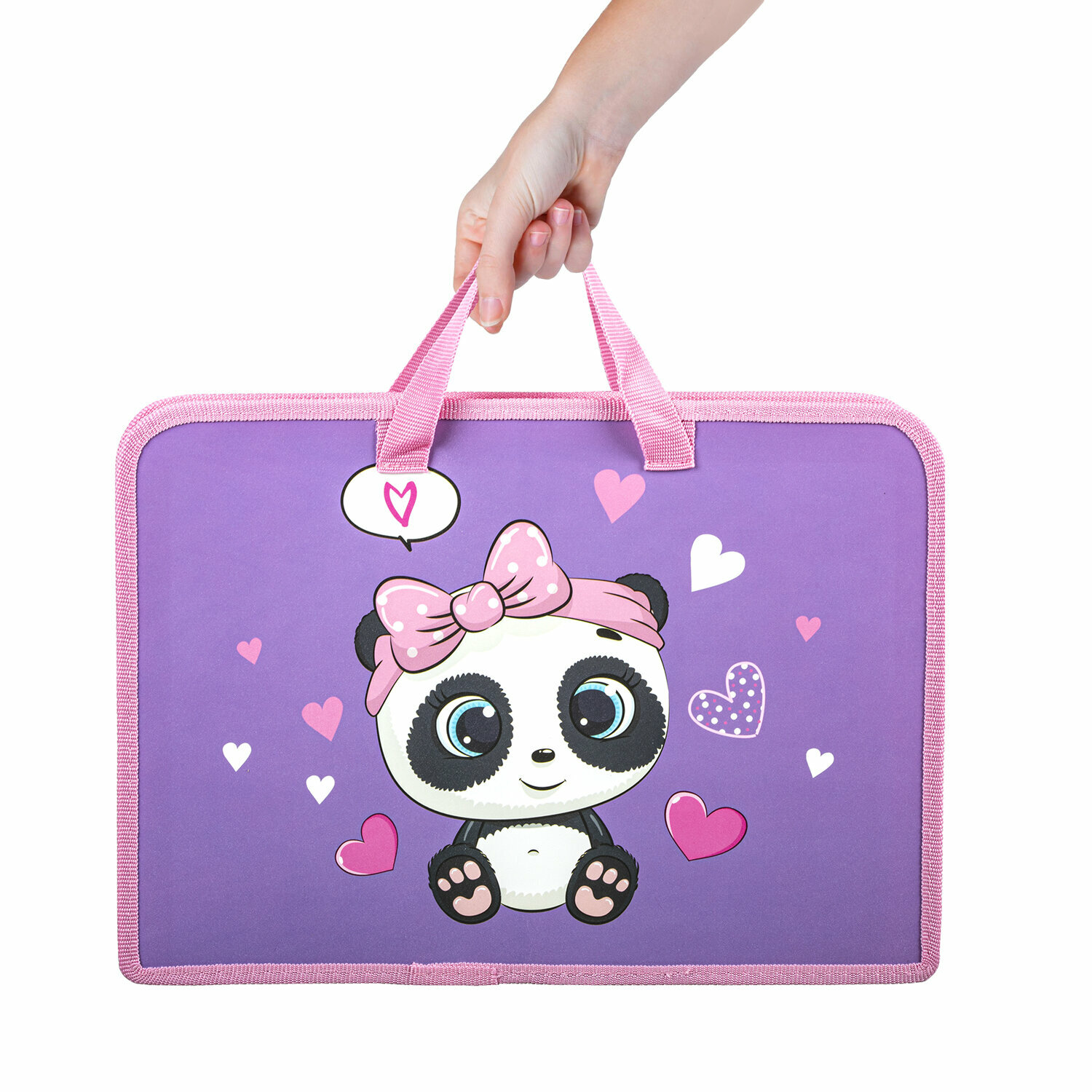Папка с ручками Юнландия на молнии, А4, 1 отделение, пластик, ширина 45 мм, "Sweet Panda"