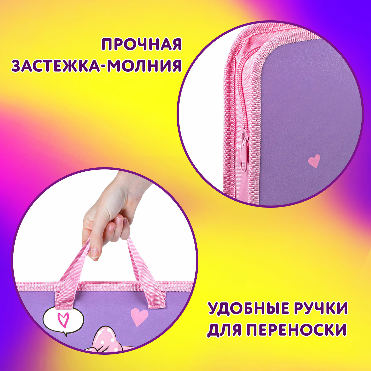 Папка на молнии с ручками А4 Юнландия "Sweet", 1 отделение, пластик, ширина 45мм (270947)