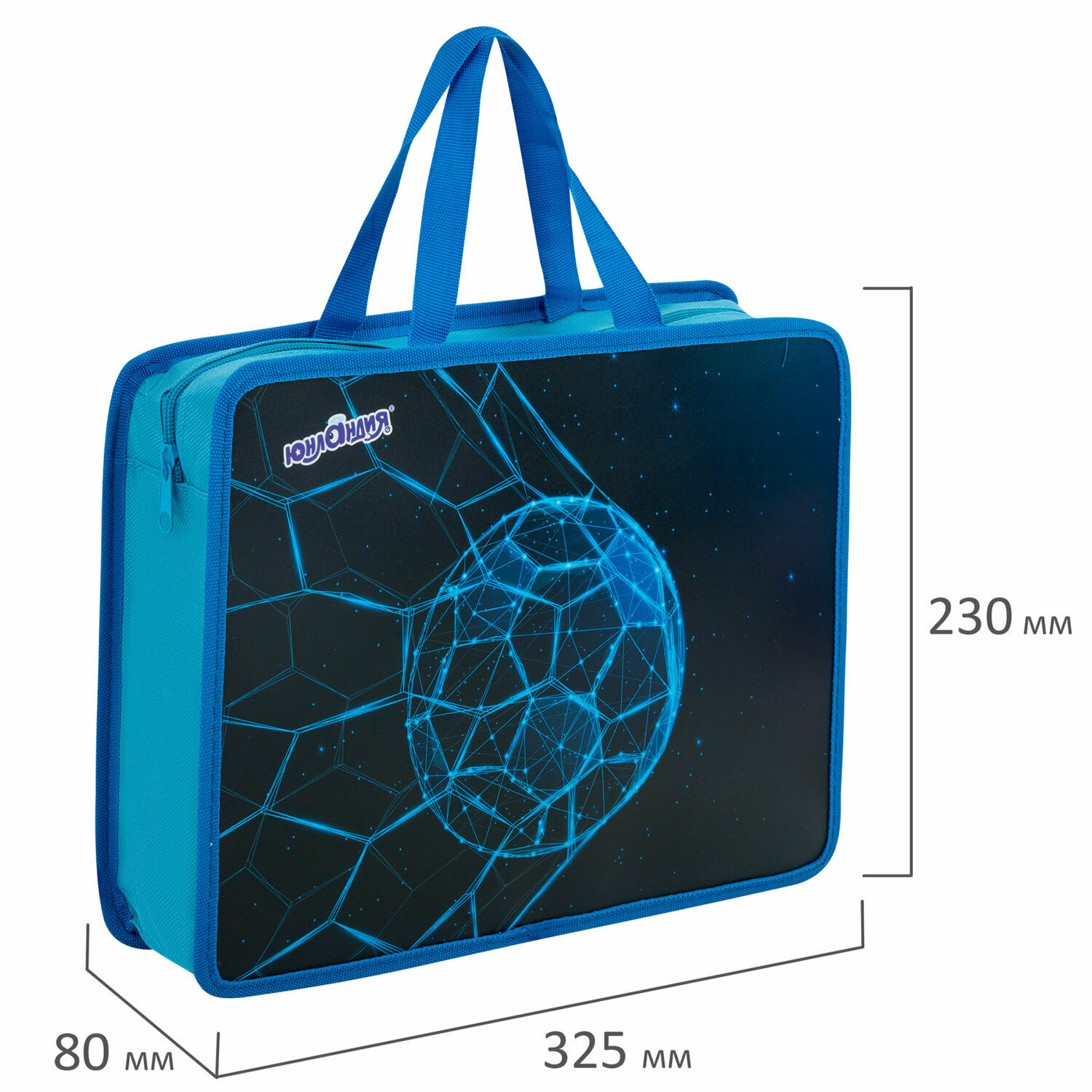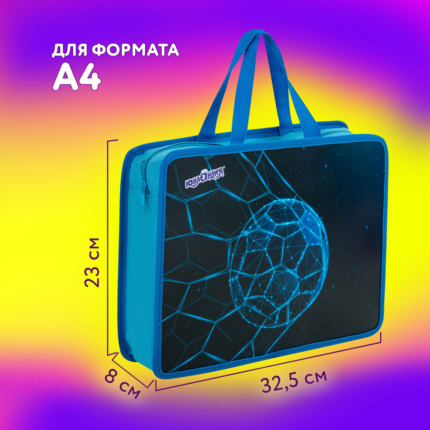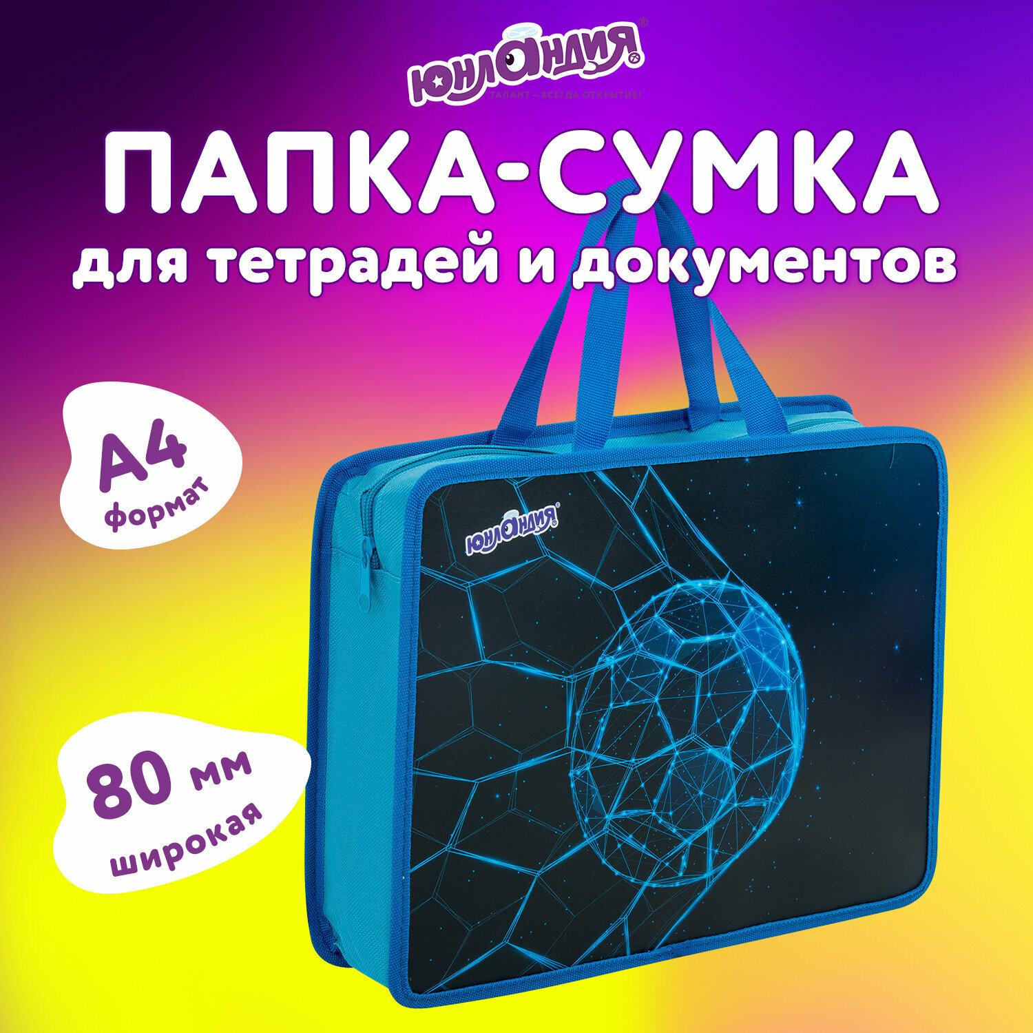 Папка на молнии с ручками Юнландия А4, 1 отделение, пластик, 80 мм, Football, 272158