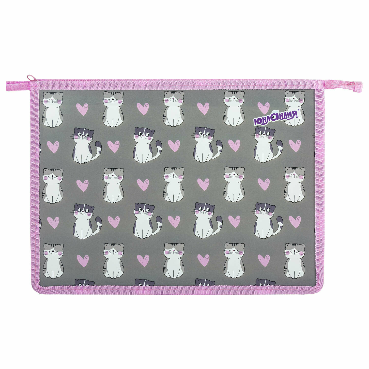 Купить Папка для тетрадей Юнландия А4, 1 отделение, пластик, на молнии, Sweet whiskers, 272137