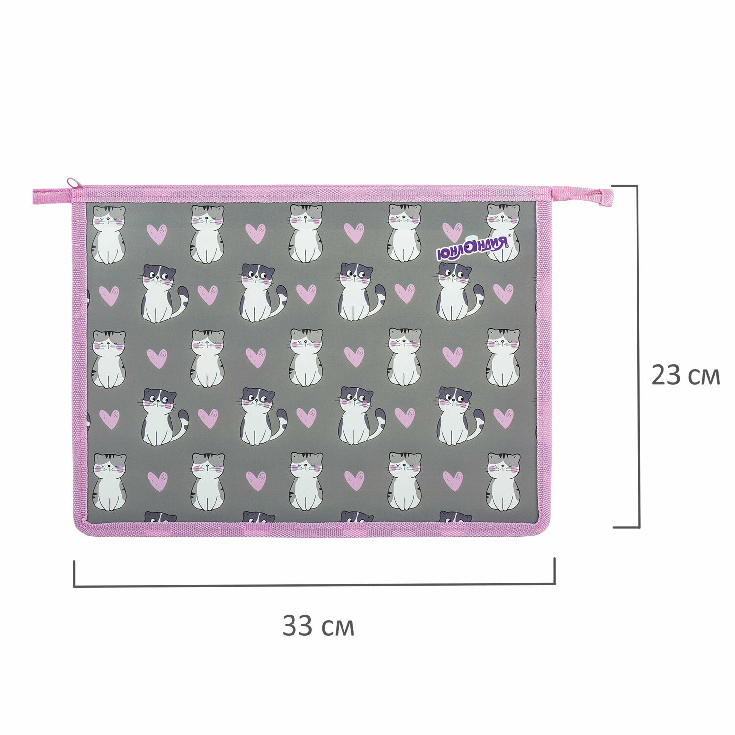 Папка для тетрадей на молнии Юнландия А4, 1 отделение, пластик, "Sweet whiskers"