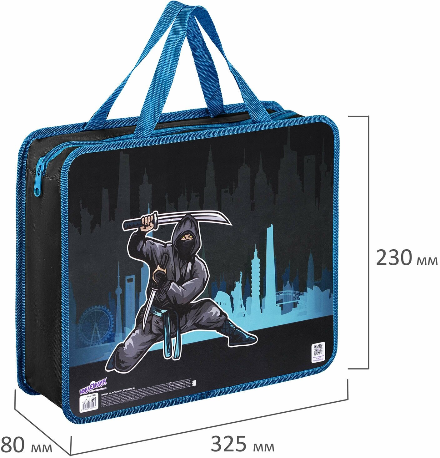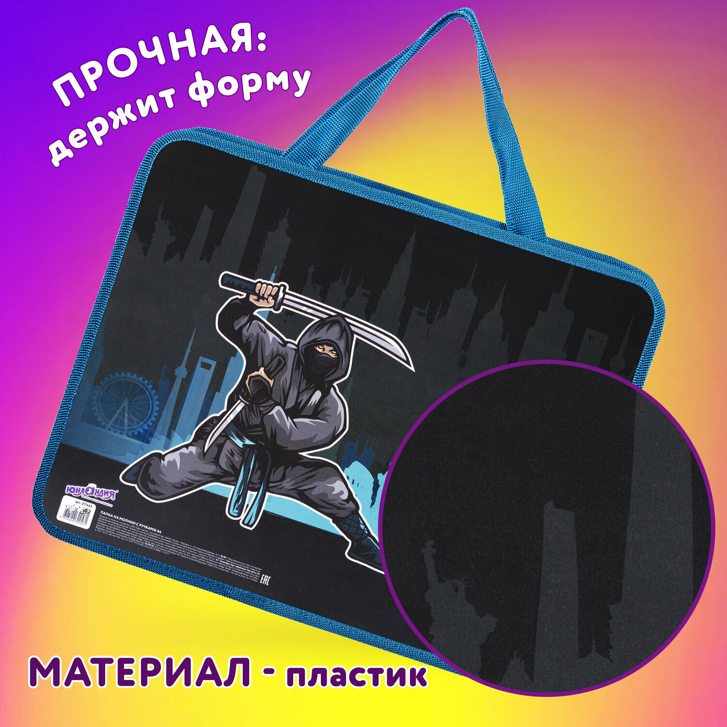 СохранитьПапка-сумка / портфель для документов / бумаг / тетрадей / школы канцелярская с ручками на молнии Юнландия А4, 1 отделение, Black Ninja, 271463 интересное: