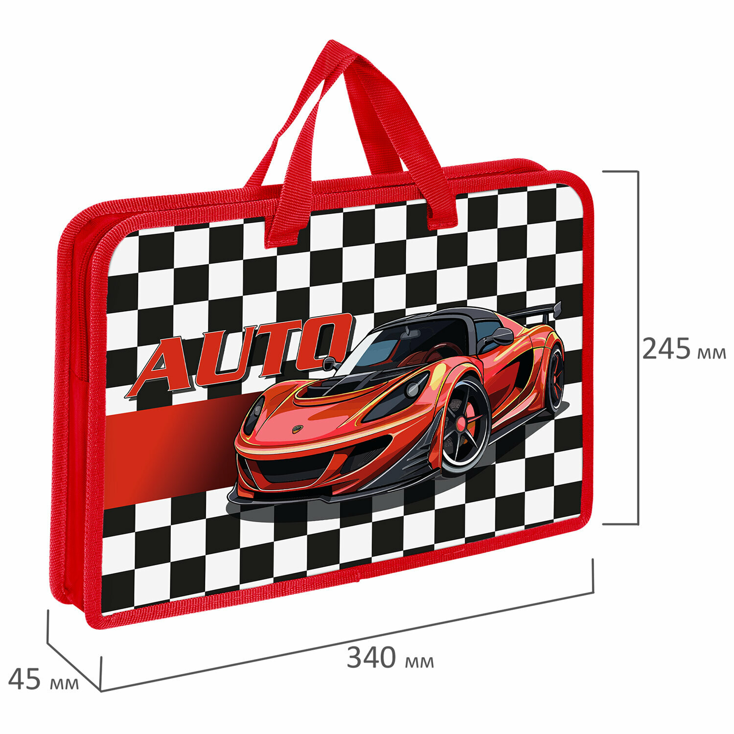 Купить Папка для тетрадей, труда, рисования и изо А4 для мальчика на молнии с ручками, канцелярия для школы, 1 отд пластик 45 мм, Юнландия Auto, 272150