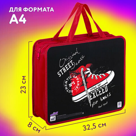 Папка на молнии с ручками юнландия А4, 1 отделение, пластик, ширина 75 мм, "No limits", 270955