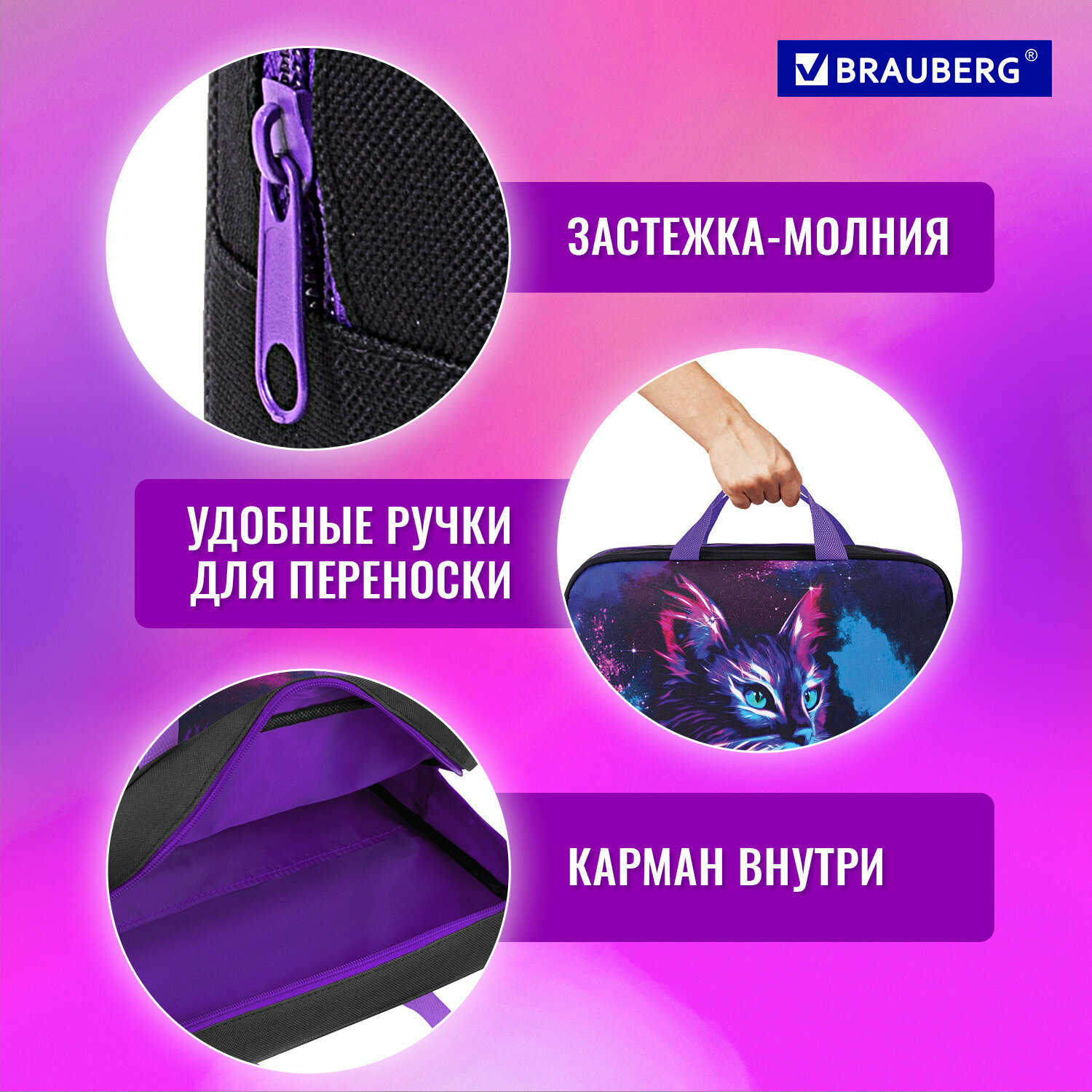 Папка на молнии с ручками Brauberg А4, 1 отделение, полиэстер, 80 мм, Anime cat, 272174