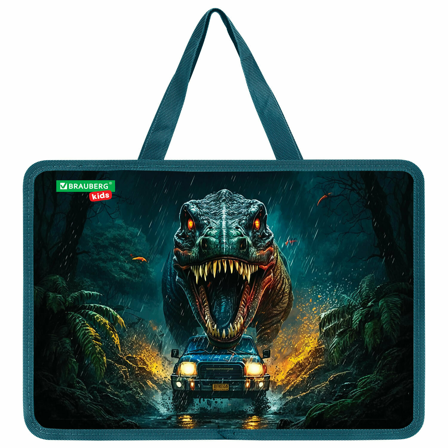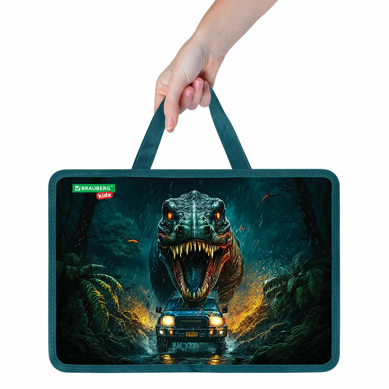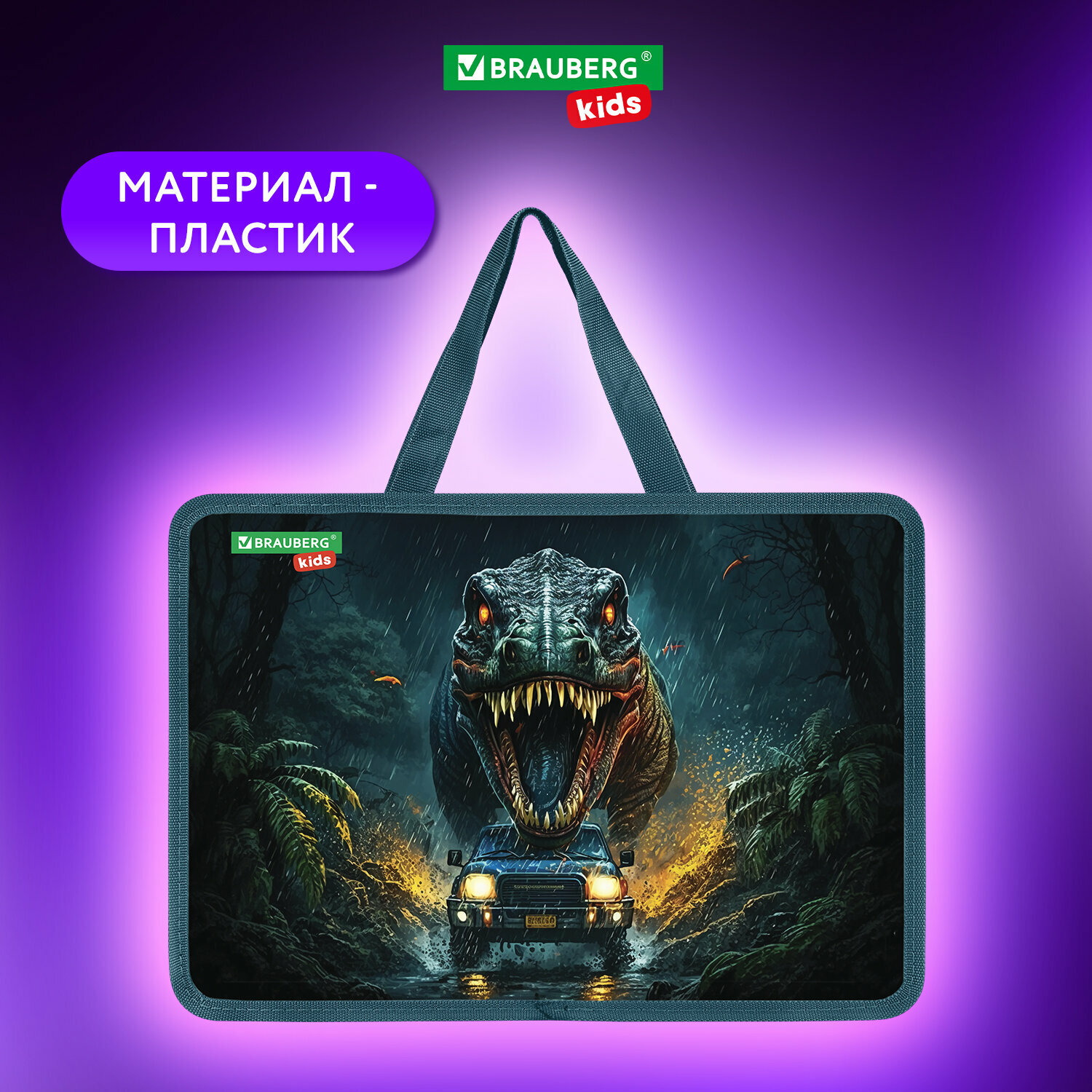 Купить Папка на молнии с ручками BRAUBERG KIDS А4, 1 отделение, пластик, 100 мм, "Dino chase", 272119