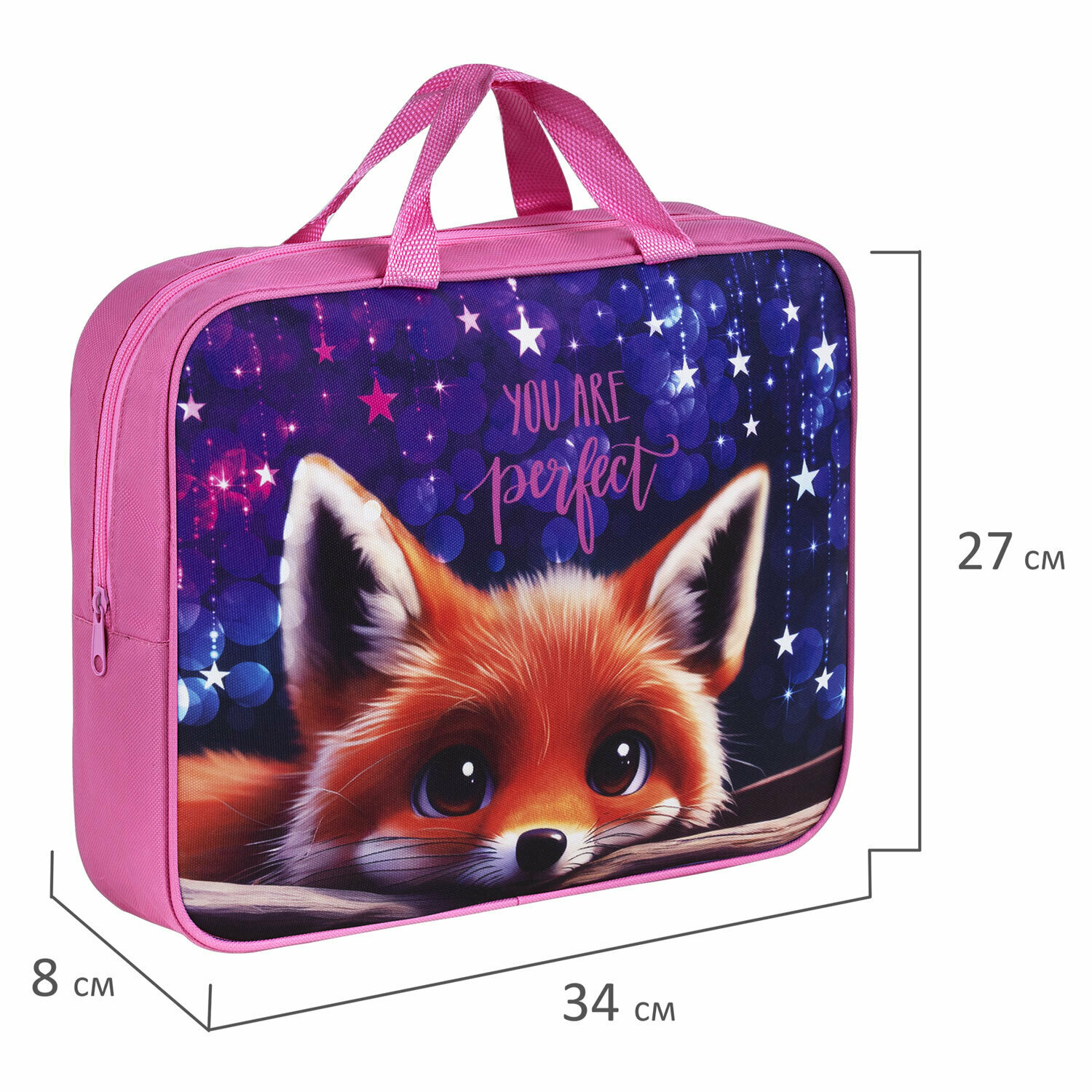 Папка на молнии с ручками Brauberg А4, 1 отделение, полиэстер, 80мм, Cute fox, 272176 интересное: