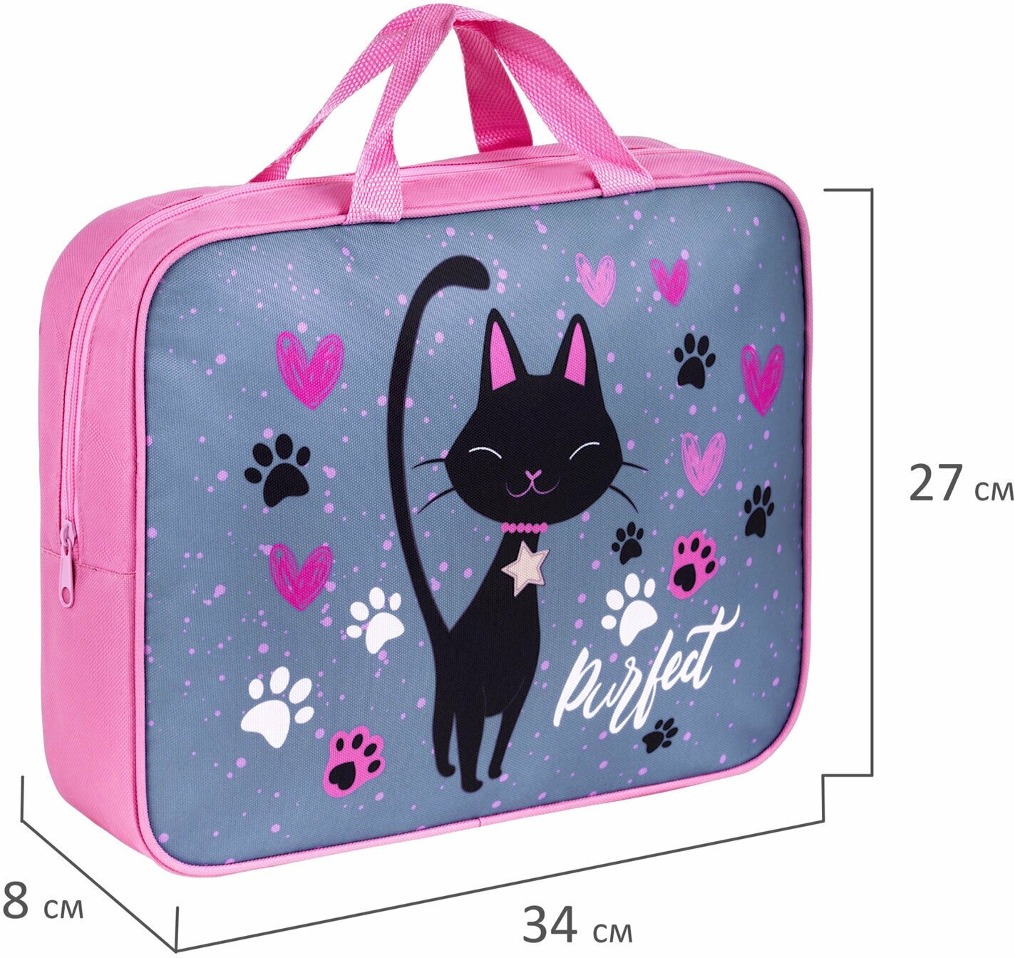 Папка на молнии с ручками Brauberg А4, 1 отделение, полиэстер, 80 мм, Anime cat, 272174