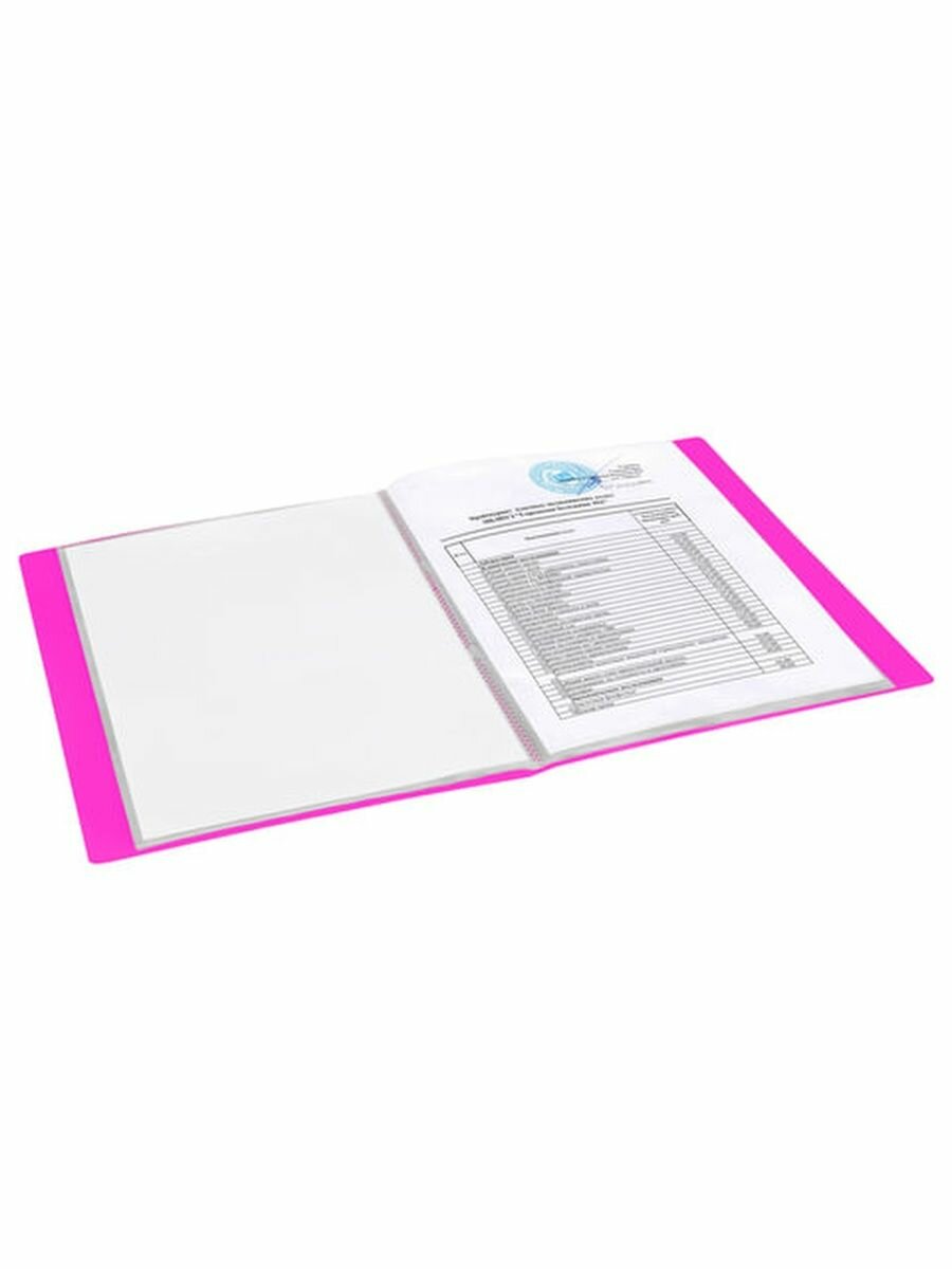 Папка с файлами Brauberg 20 вкладышей "Neon", 16м, неоновая розовая, 700 мкм (227450)