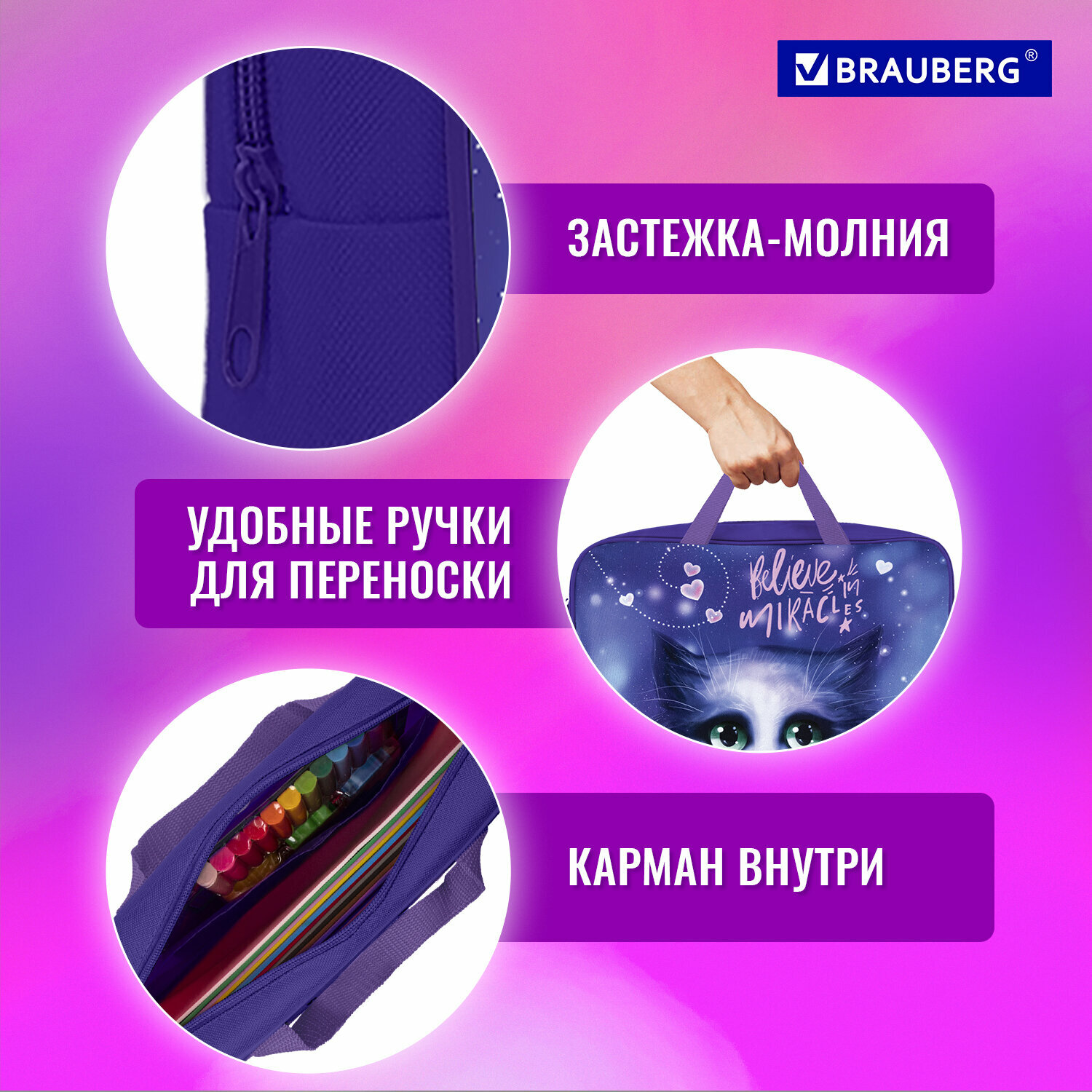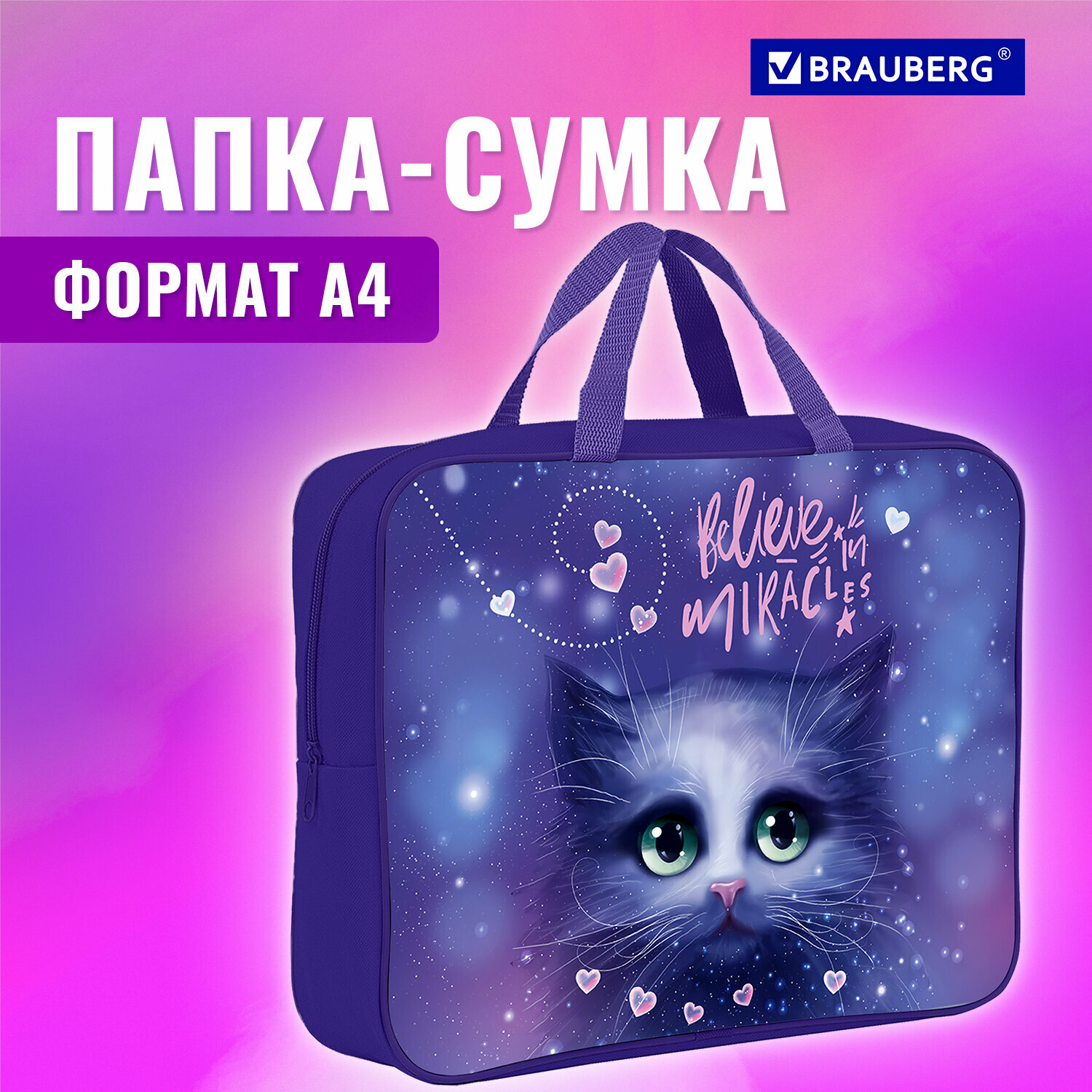 Папка на молнии с ручками Brauberg А4, 1 отделение, полиэстер, 80 мм, Anime cat, 272174