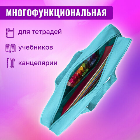 Папка-сумка / портфель для документов / бумаг / тетрадей / школы канцелярская с ручками на молнии Brauberg А4, 1 отделение, Sweet dreams, 270959