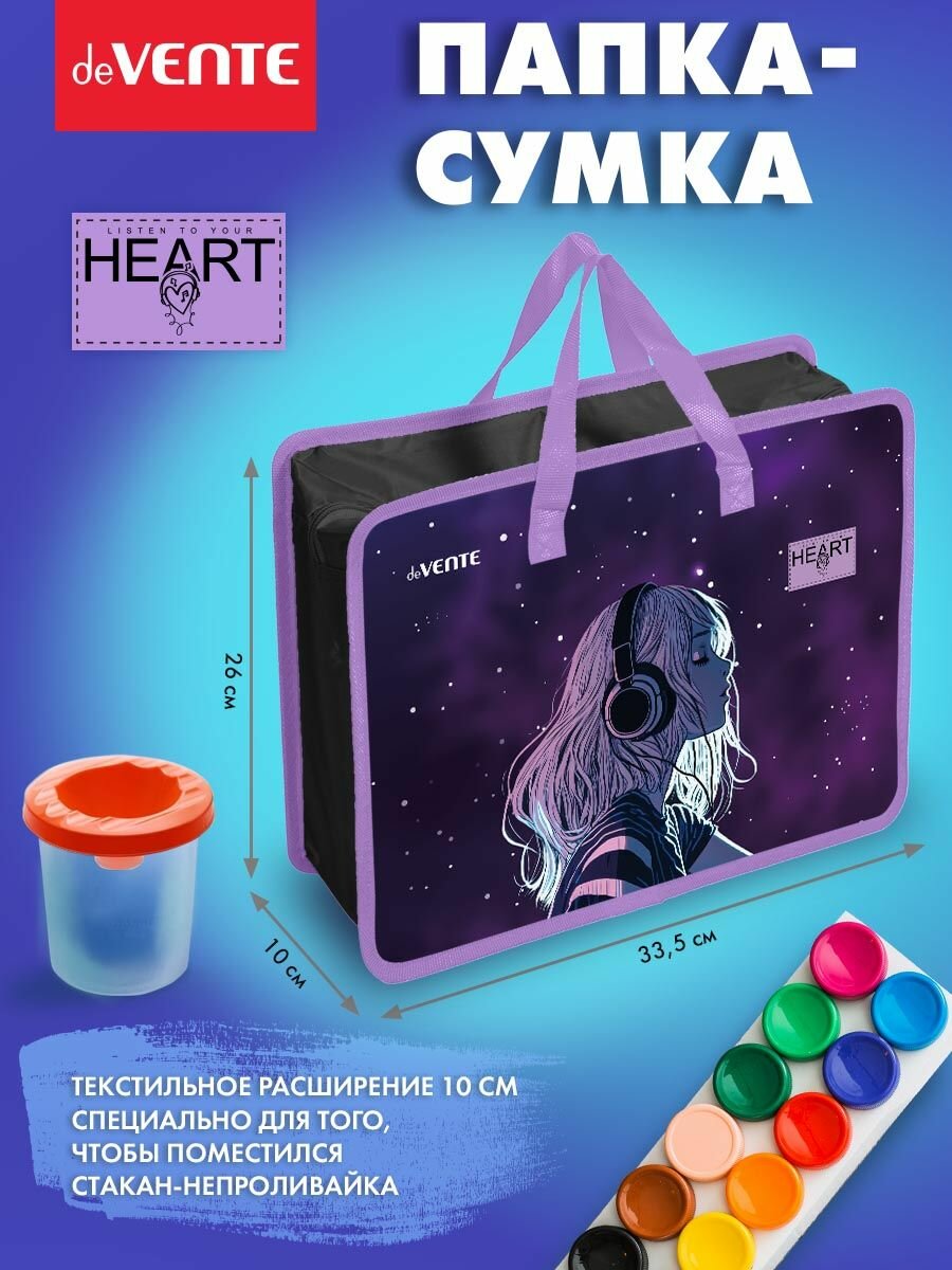 Купить Папка для тетрадей, изо и технологии "deVENTE. Listen To Yor Heart" A4 с ручками, с расширением 10 см