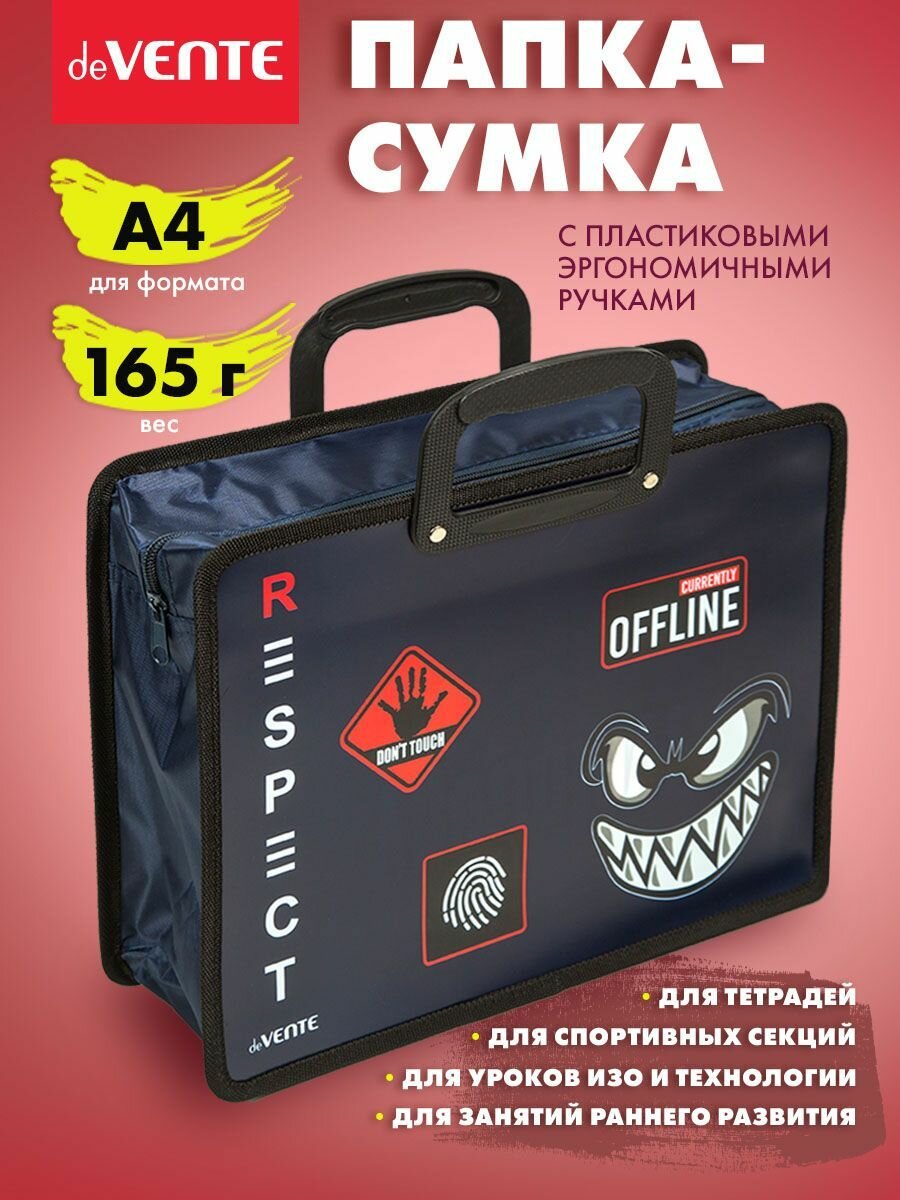 Папка с ручками А4, 335 х 260 х 100 мм, пластиковая, ручки-текстиль, deVENTE Hey Bro, чёрная