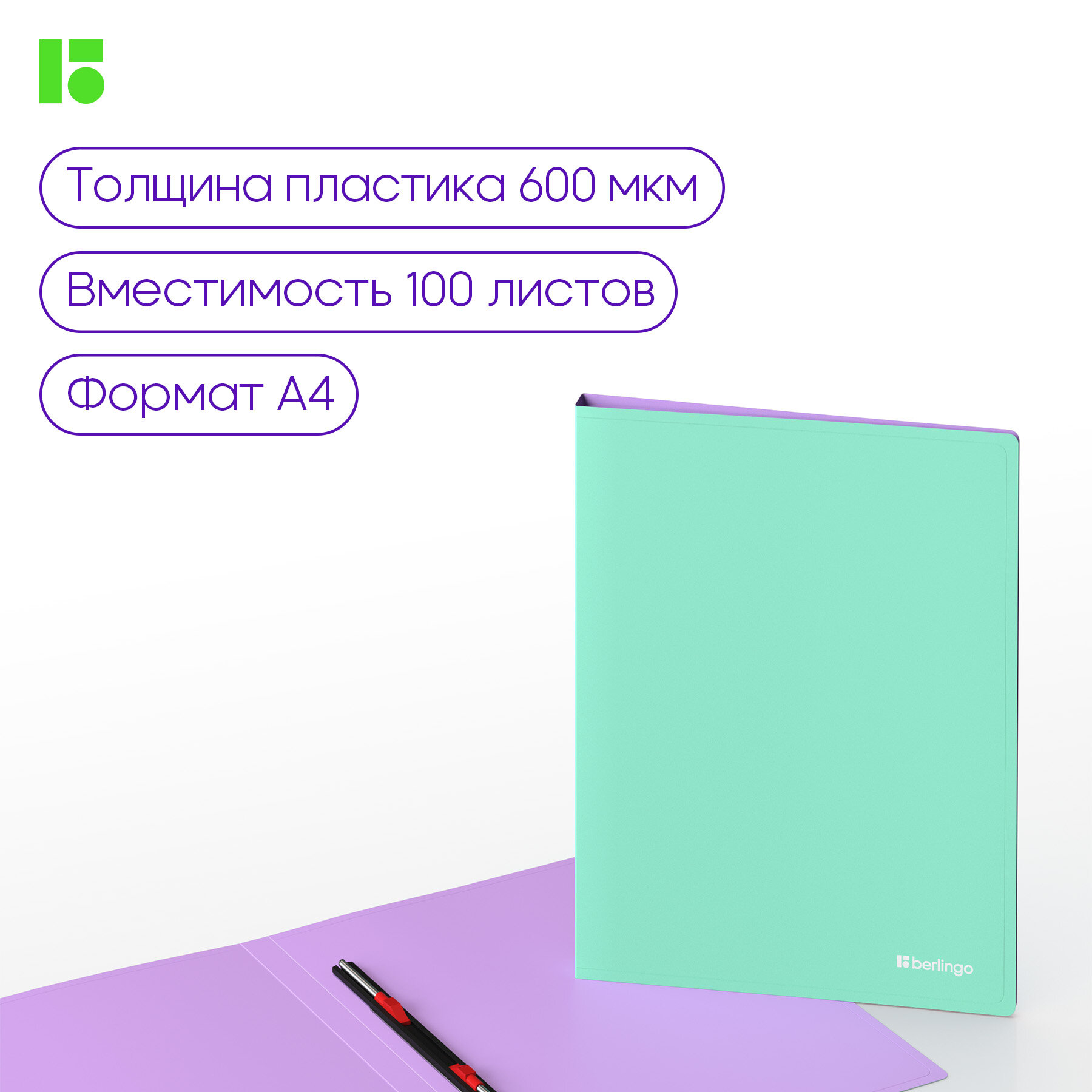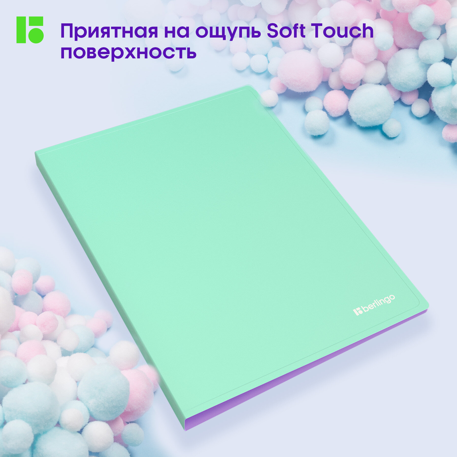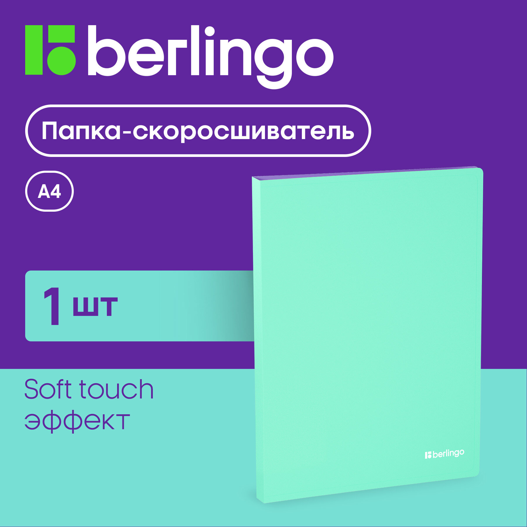 Купить Папка с пружинным скоросшивателем Berlingo "Haze", 17мм, 600мкм, с внутр. карманом, мятная, софт-тач