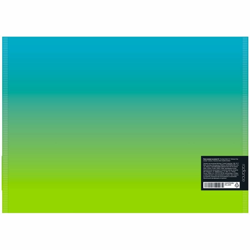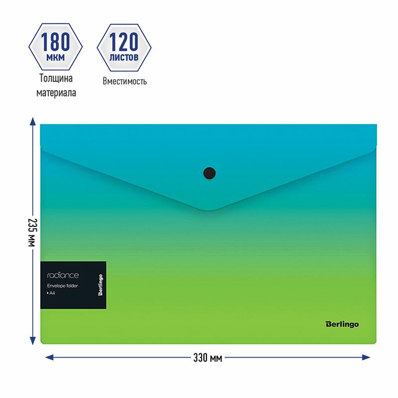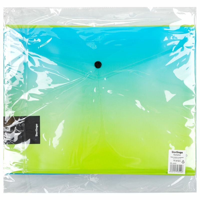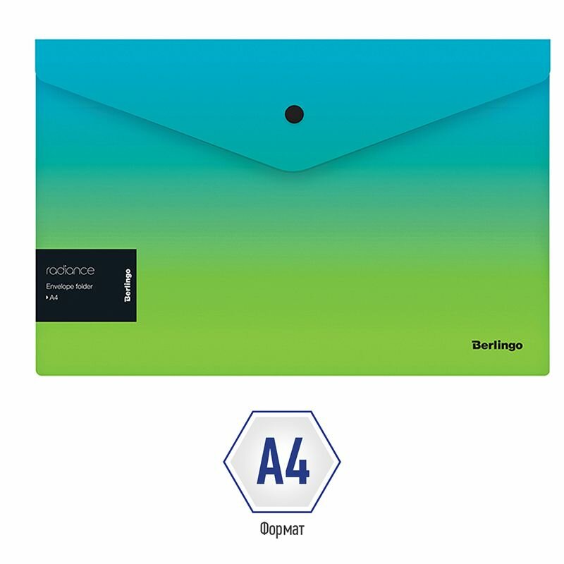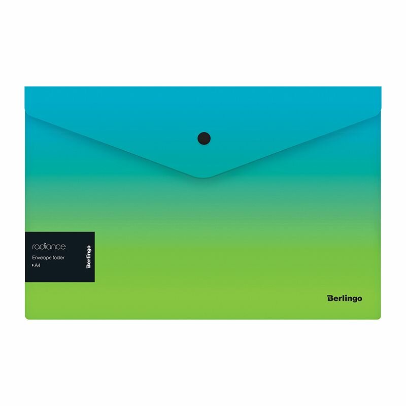 Купить Папка-конверт на кнопке Berlingo "Radiance" А4, 180мкм, голубой/зеленый градиент, с рисунком (12 шт)