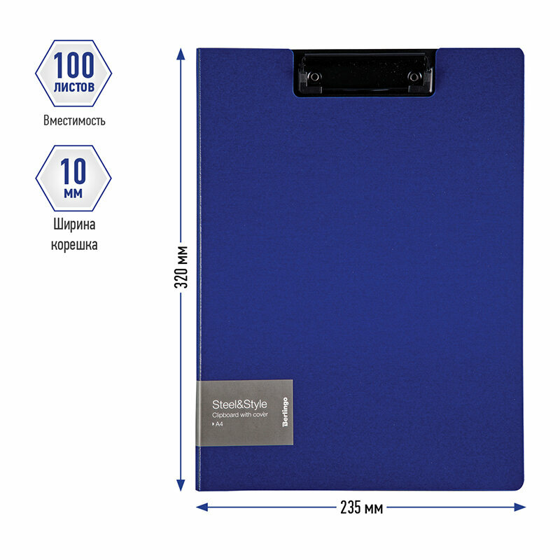 Купить Папка-планшет с зажимом Berlingo "Steel&Style" A4, пластик (полифом), синяя