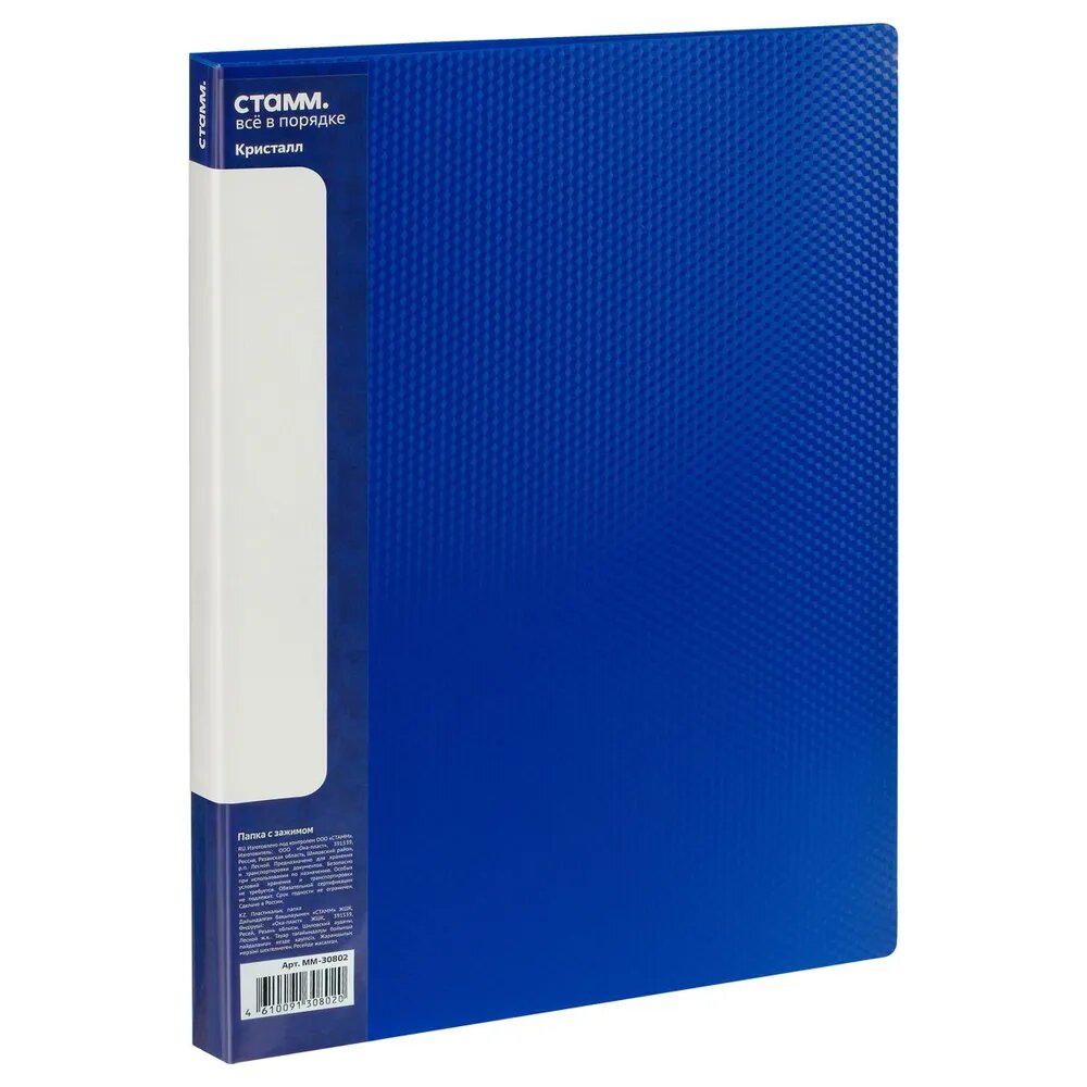 Папка с боковым зажимом СТАММ "Кристалл" А4, 17мм, 700мкм, пластик, синяя интересное: