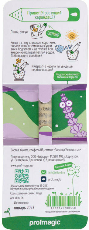 «Растущий карандаш» Profmagic mini с семенами лаванды, овальный, фиолетовый