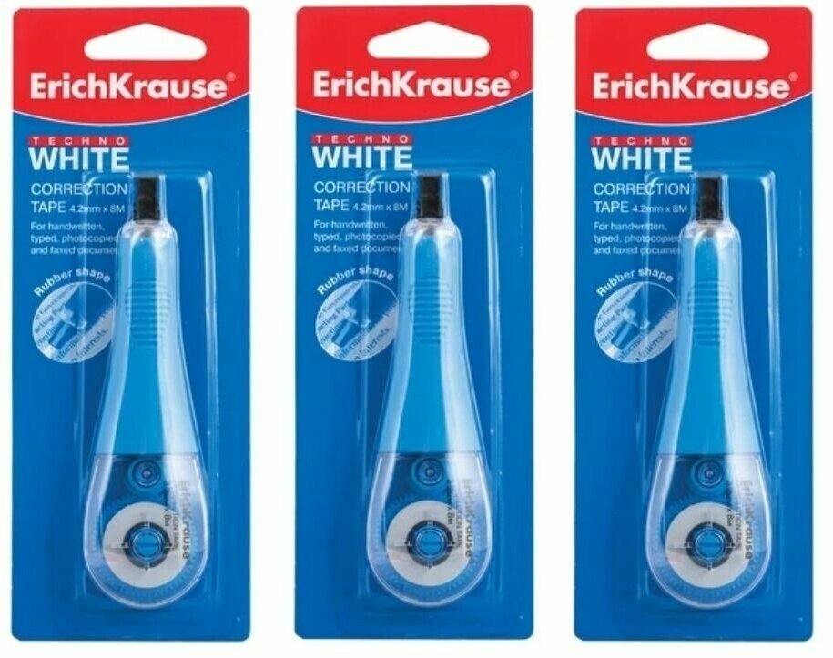 Купить Корректирующая машинка Erich Krause Techno White, 4,2мм*8м (3 шт. в упаковке)