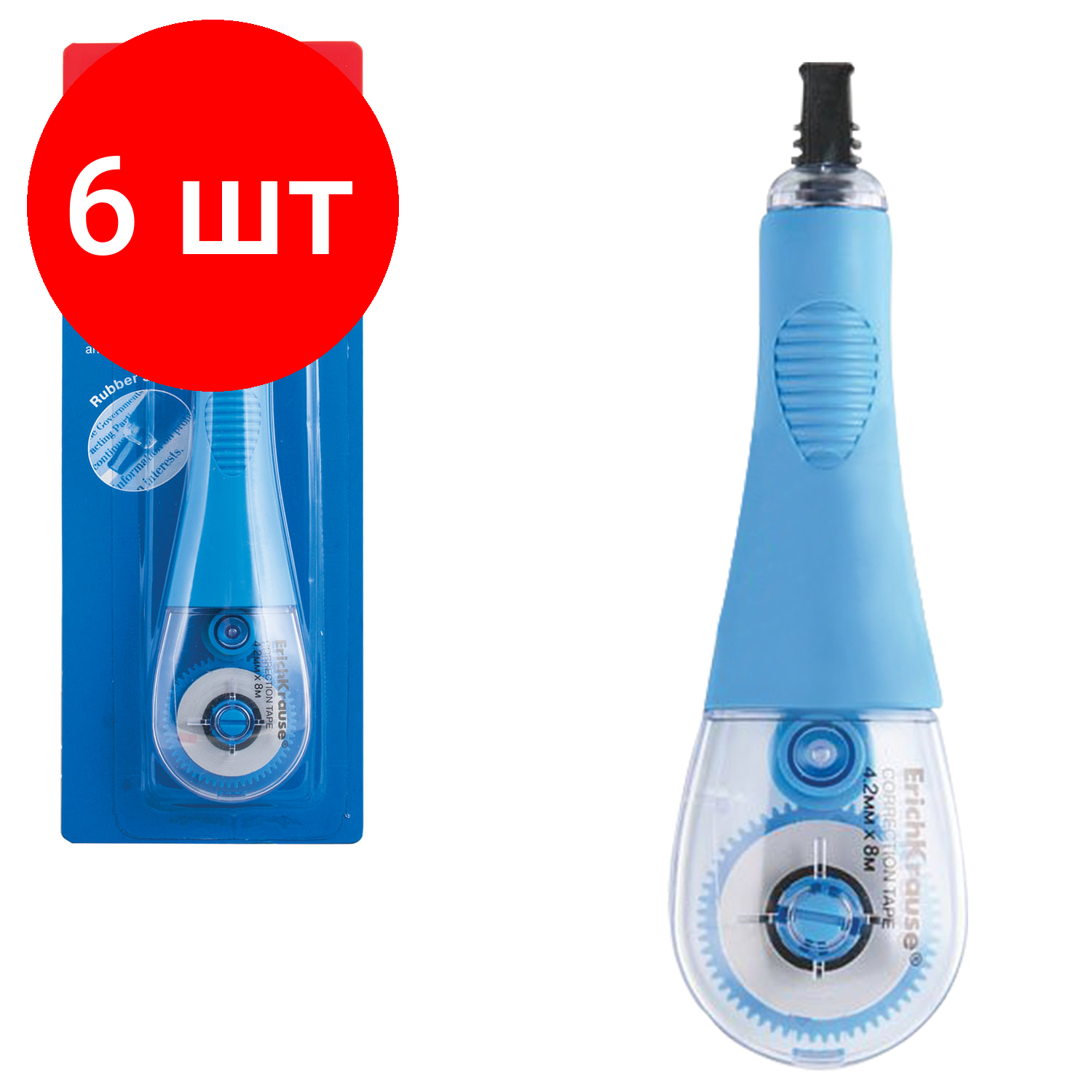 Купить Комплект 6 шт, Корректирующая лента ERICH KRAUSE "Techno White", 4.2 мм х 8 м, блистер, европодвес, 21887