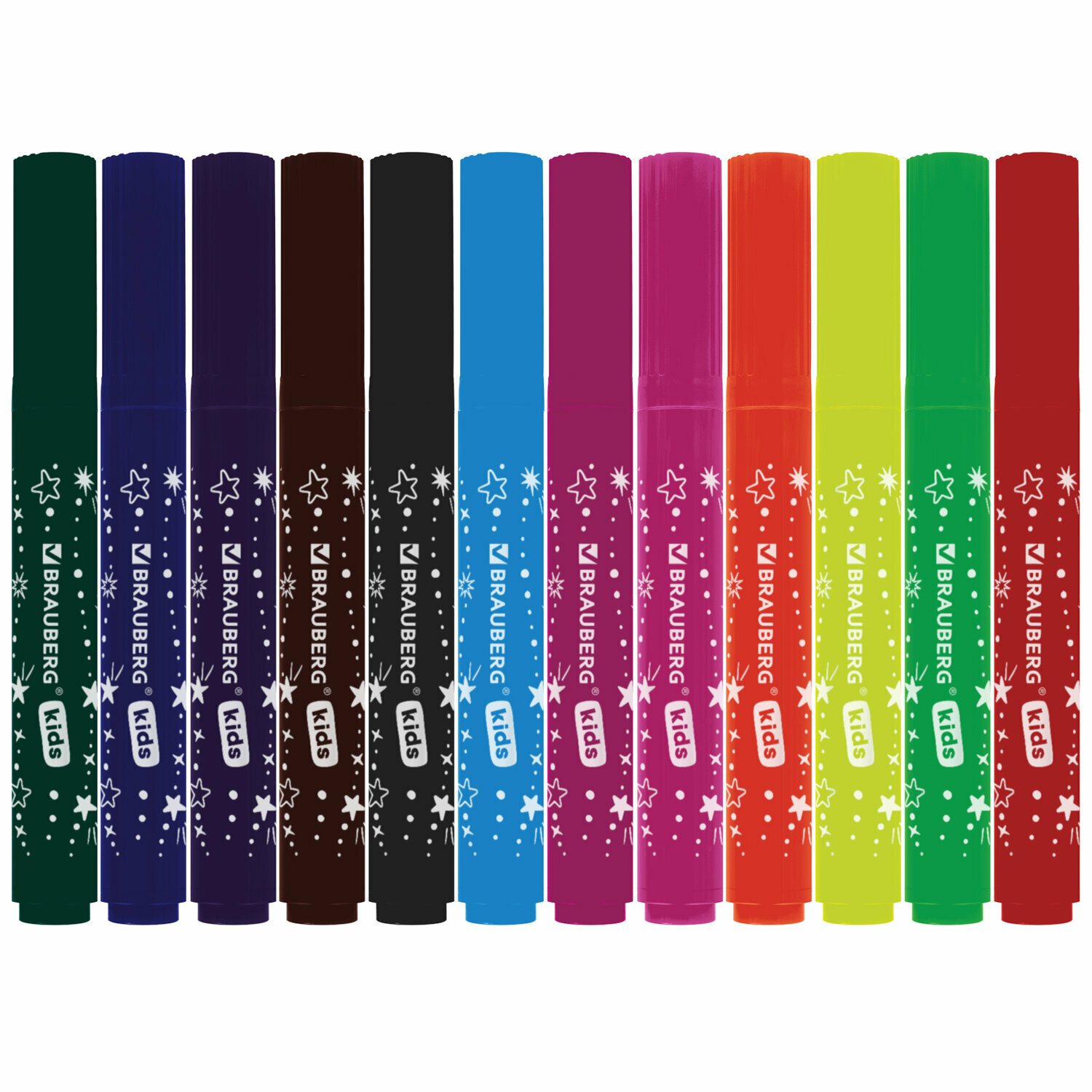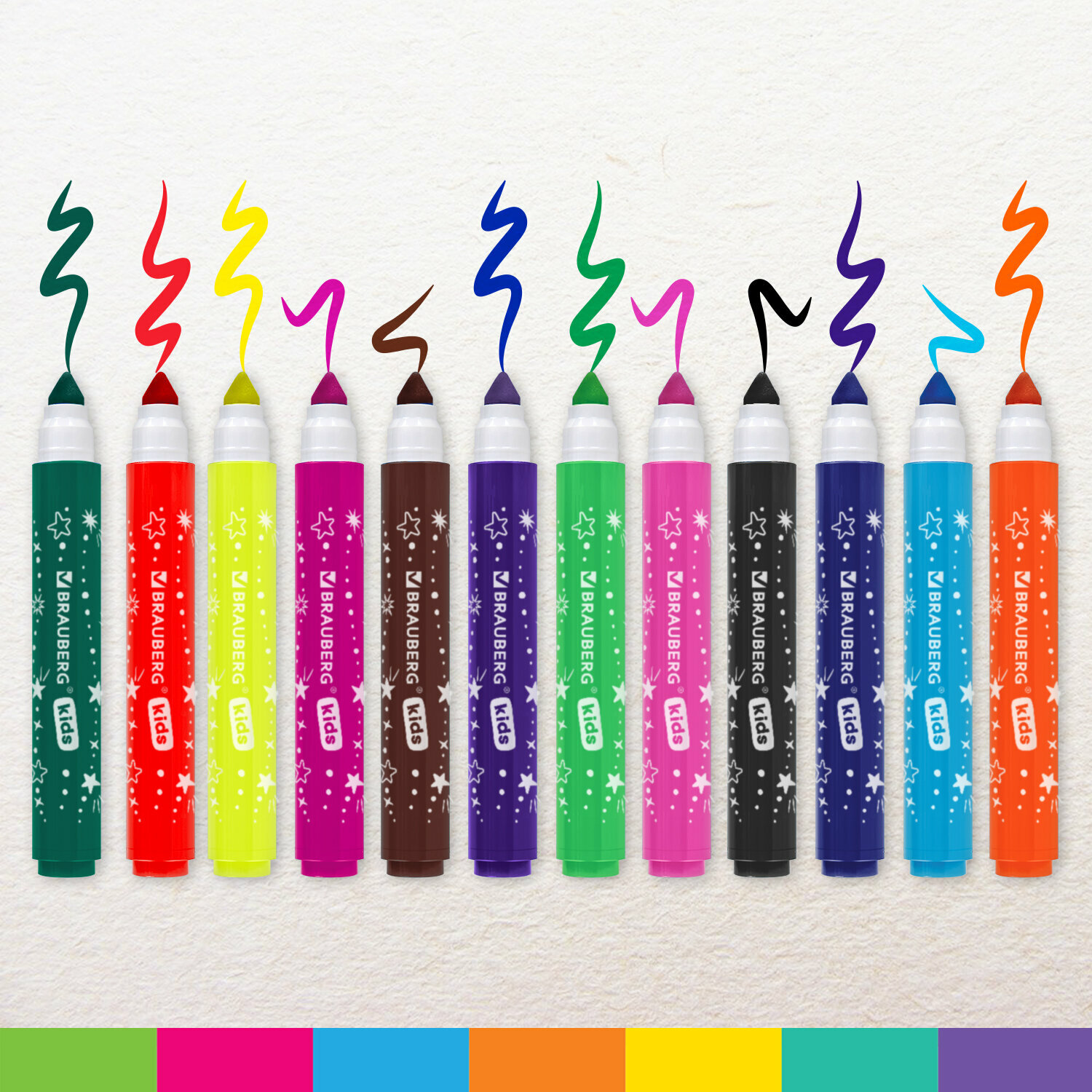 Фломастеры утолщенные детские смываемые для детей / малышей для рисования 12 цветов, вентилируемый колпачок, Brauberg Kids, 152187 интересное: