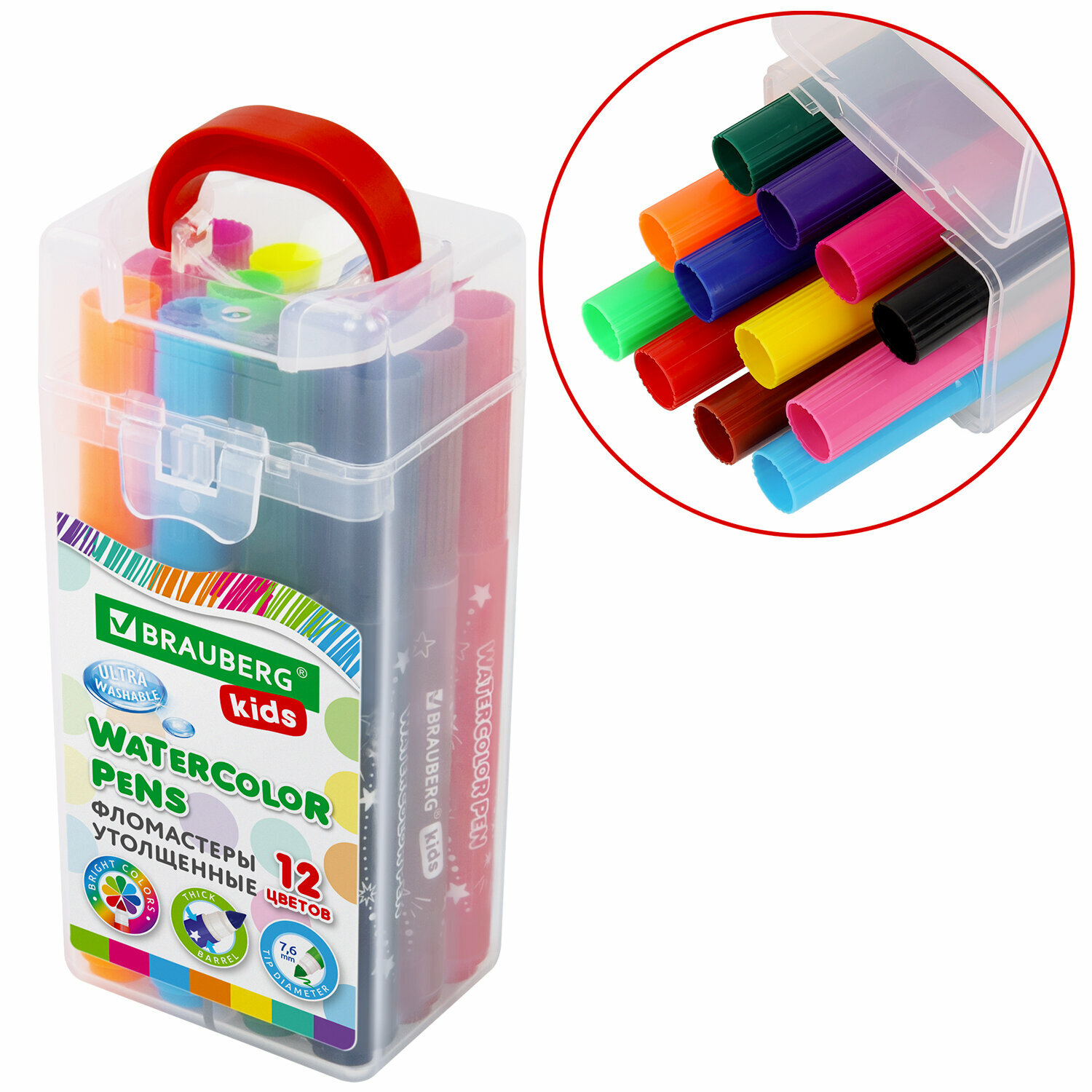 Купить Фломастеры утолщенные детские смываемые для детей / малышей для рисования 12 цветов, вентилируемый колпачок, Brauberg Kids, 152187