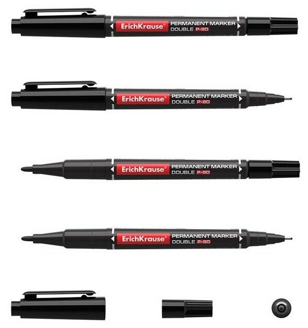 СохранитьДвухсторонний перманентный маркер ErichKrause Double P-80, цвет чернил синий, черный, красный интересное: