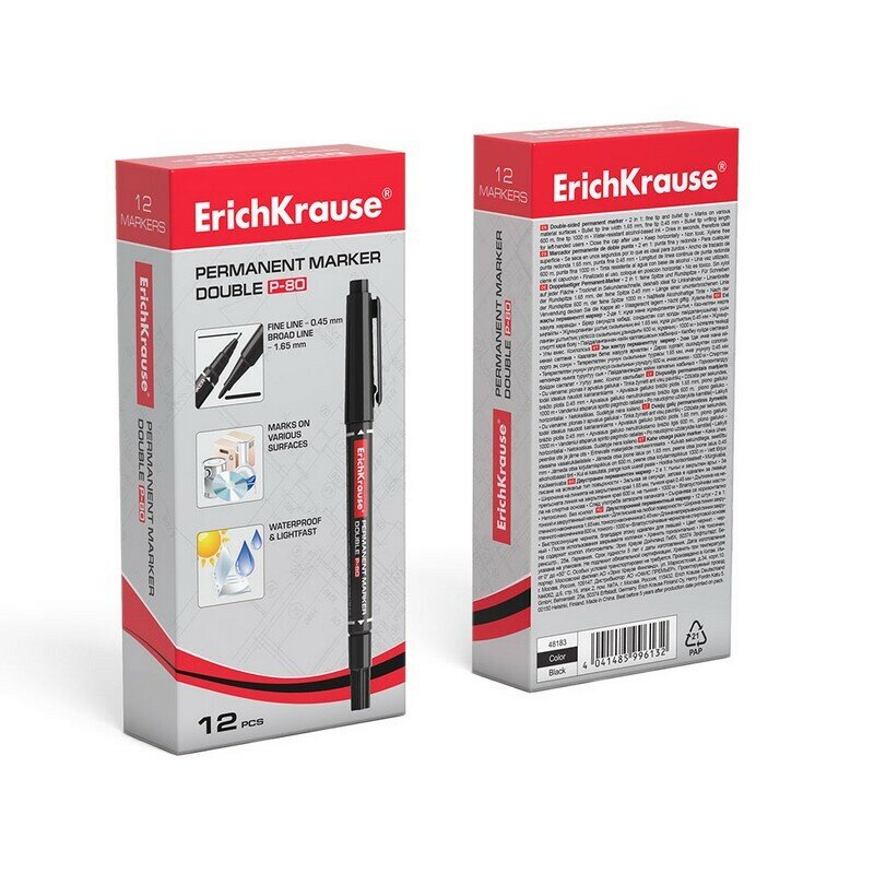 Ниже Вы можете прочитать отзывы на Маркер перманентный двухсторонний ErichKrause Double P-80, цвет чернил черный (3 шт. в упаковке), ознакомится с подробными характеристиками, посмотреть интересные обзоры и фотографии на Маркер перманентный двухсторонний ErichKrause Double P-80, цвет чернил черный (3 шт. в упаковке).