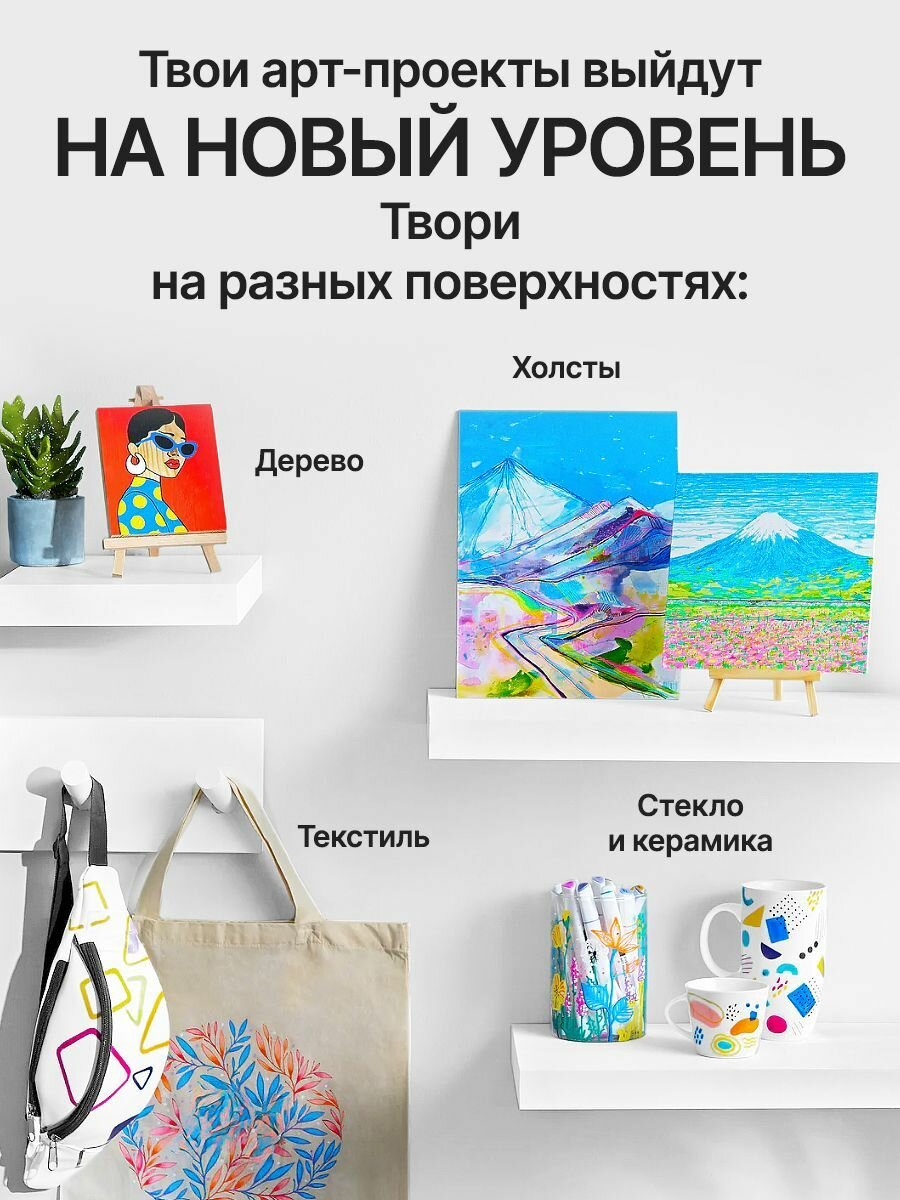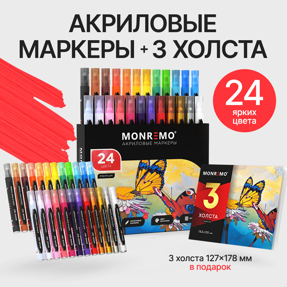 Акриловые маркеры водостойкие + 3 холста, 24 цвета интересное: