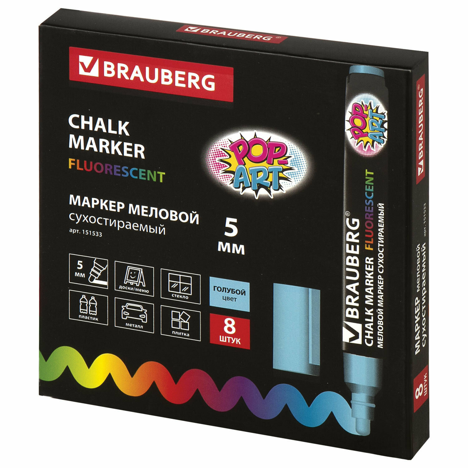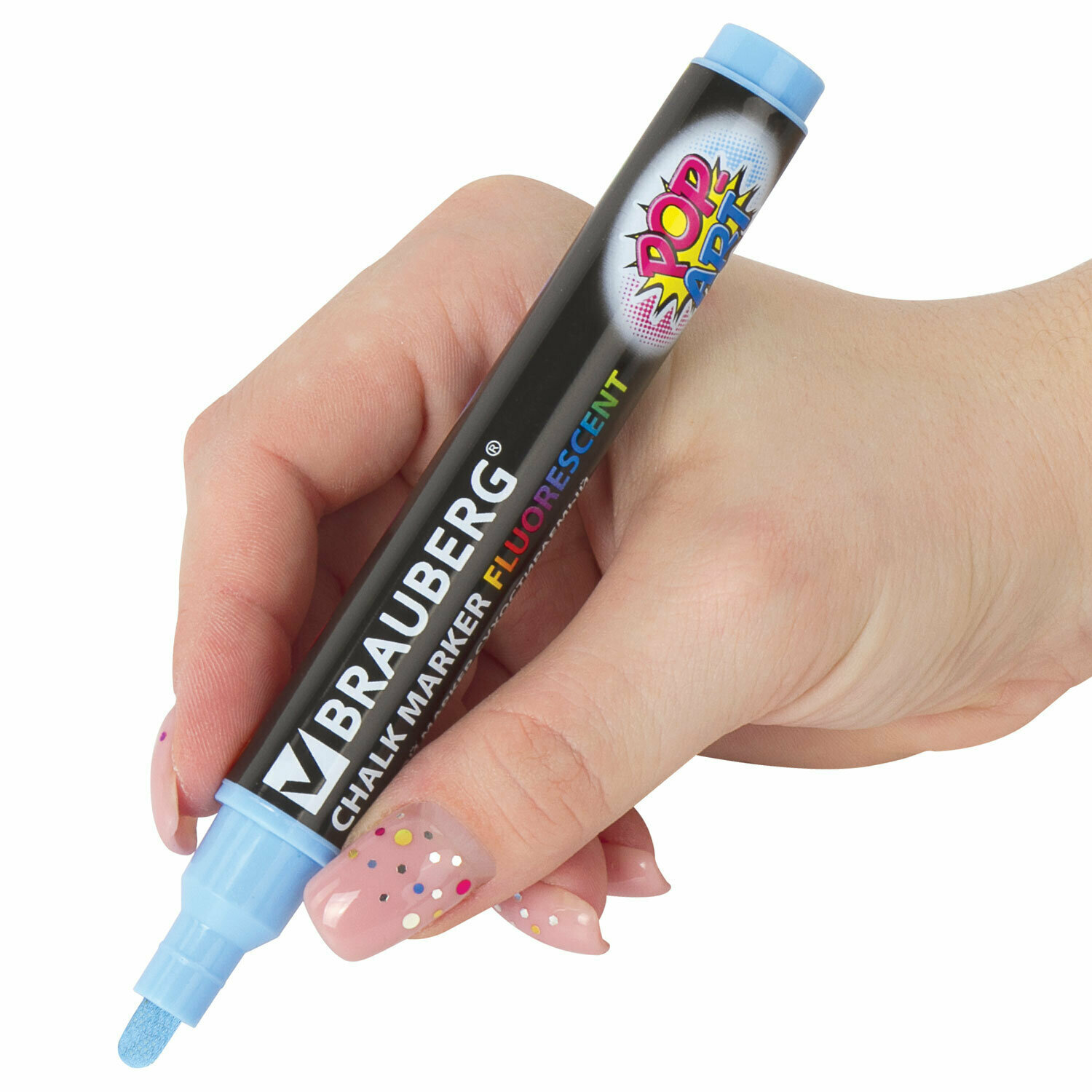 Купить Маркеры / фломастеры меловые стираемые для доски и других поверхностей Pop-art Голубой, 5 мм, стираемый, для гладких поверхностей, Brauberg