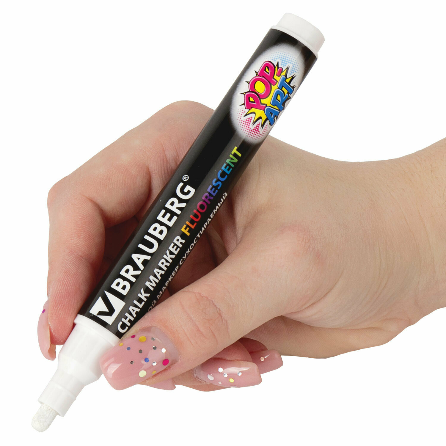 Купить Маркеры / фломастеры меловые стираемые для доски и других поверхностей Pop-art Белый, 5 мм, стираемый, для гладких поверхностей, Brauberg