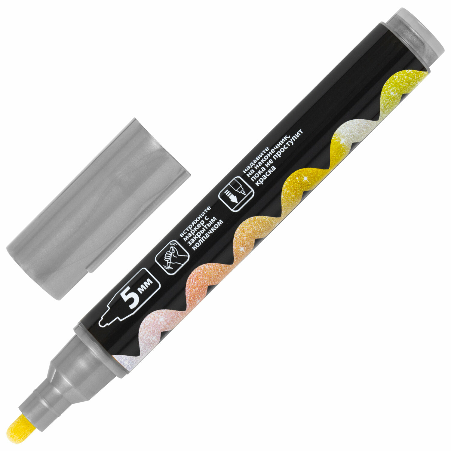 Купить Маркер (фломастер) меловой стираемый для доски Pop-art Серебряный, 5 мм, Влагостираемый, для гладких поверхностей, Brauberg, 152486