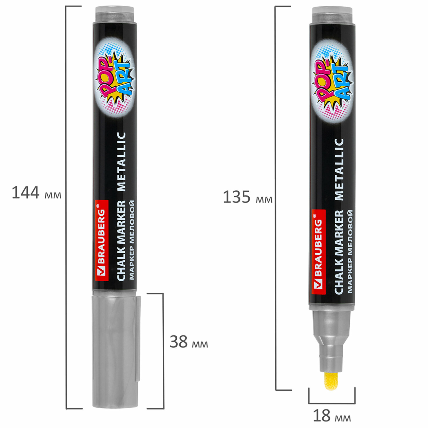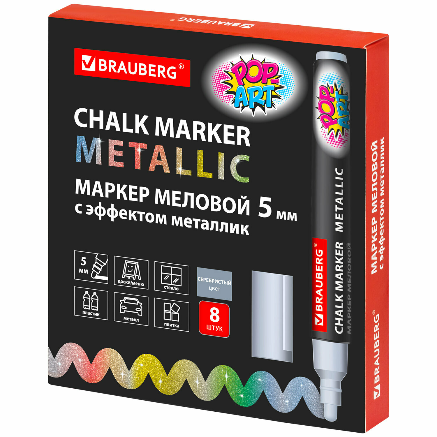 Маркер меловой Brauberg Рop-art, серебряный, 5 мм, влагостираемый, для гладких поверхностей
