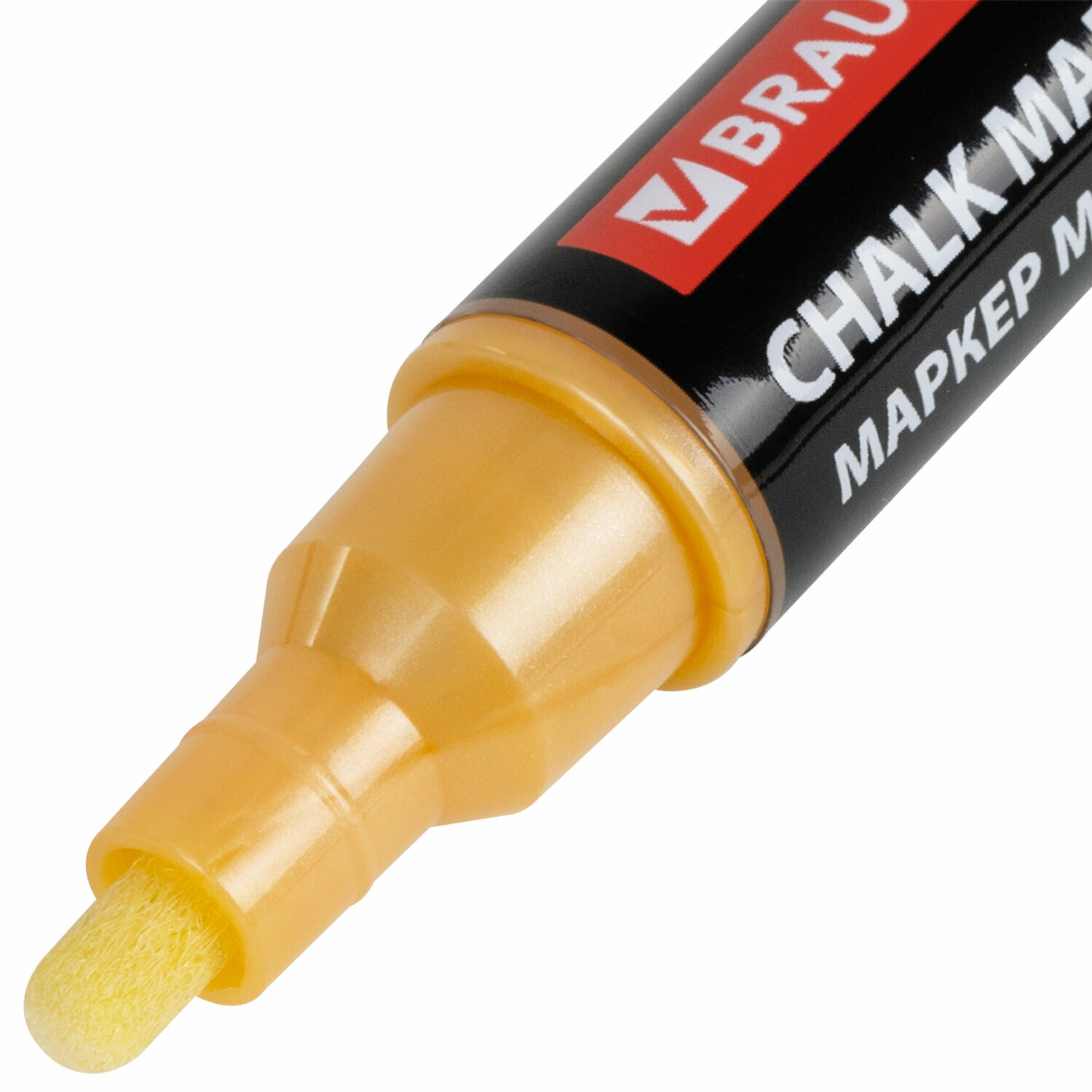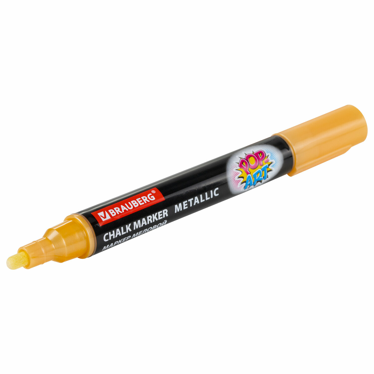 Купить Маркер (фломастер) меловой стираемый для доски Pop-art Золотой, 5 мм, Влагостираемый, для гладких поверхностей, Brauberg, 152485